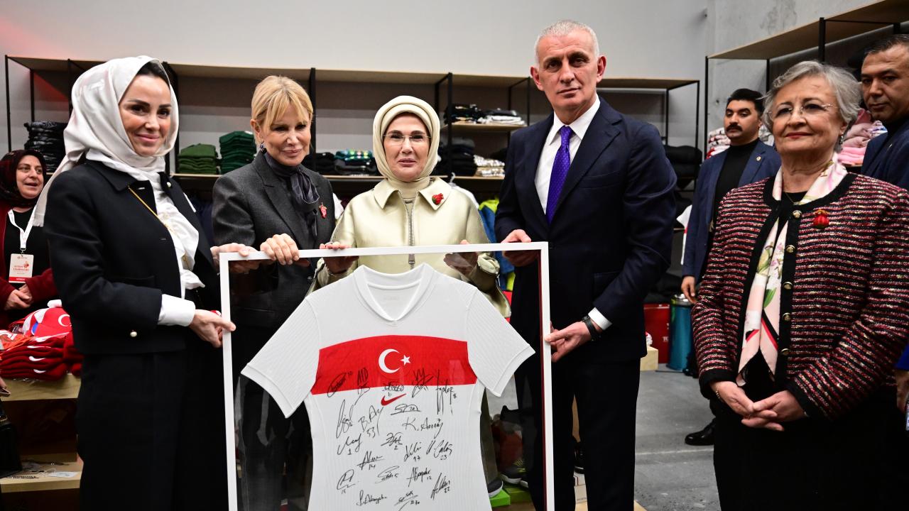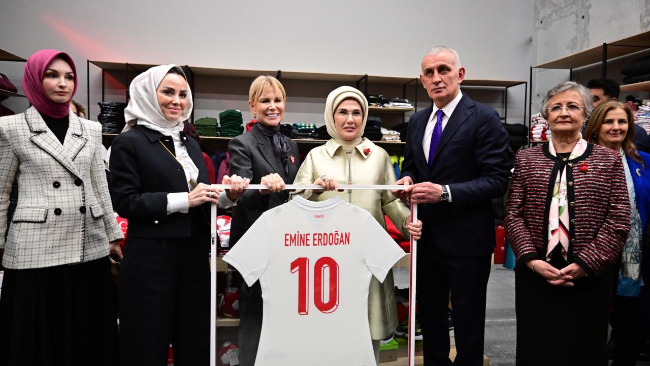 Etkinliğe katılan Türkiye Futbol Federasyonu (TFF) Başkanı İbrahim Hacıosmanoğlu da pazarda satışı gerçekleştirilen futbol formalarının bulunduğu stantta, Emine Erdoğan`a isminin yazılı olduğu imzalı milli takım forması hediye etti.