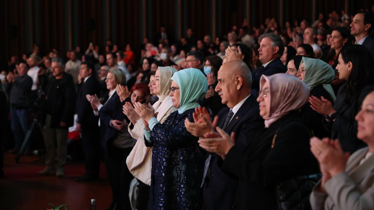 Eseri, Emine Erdoğan`ın yanı sıra Tarım ve Orman Bakanı Vahit Kirişci ile eşi Hanife Kirişci, Kültür ve Turizm Bakan yardımcıları Özgül Özkan Yavuz ve Ahmet Misbah Demircan ile Cumhurbaşkanı Yardımcısı Fuat Oktay`ın eşi Hümeyra Şahin Oktay izledi.