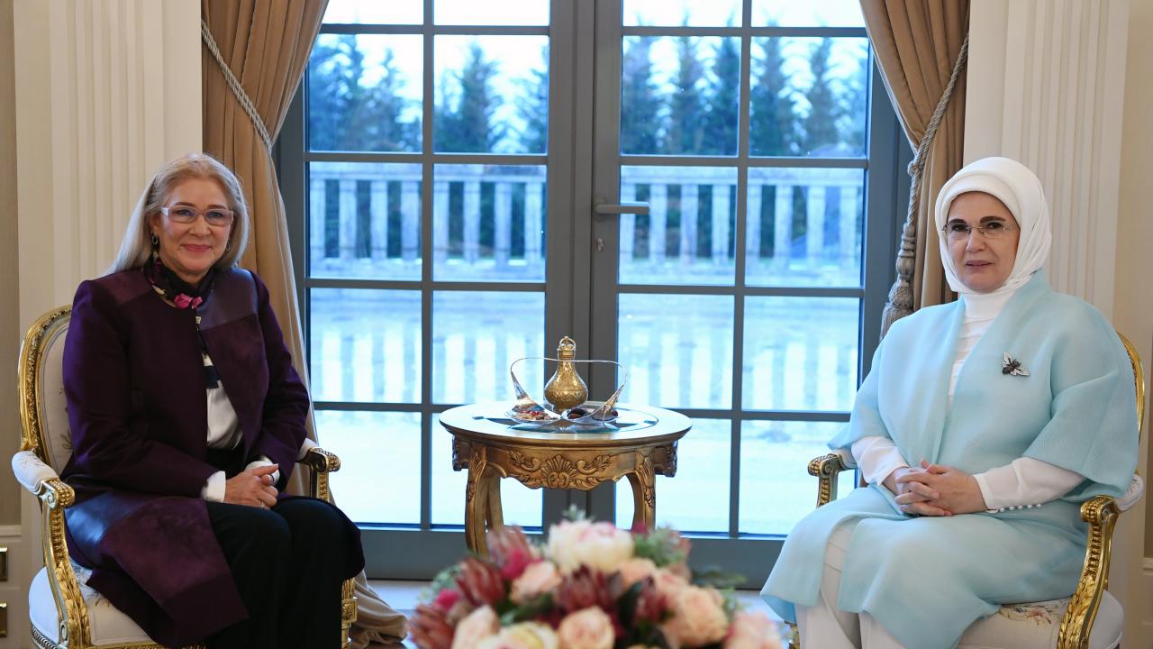 Daha sonra devlet konukevinde Anadolu`nun geleneksel kumaşlarından oluşan dokuma seçkilerinden oluşan mini bir sergiyi ziyaret eden Emine Erdoğan ve Cilia Flores de Maduro, katılacakları resmi akşam yemeği öncesinde baş başa görüşmeye geçti.