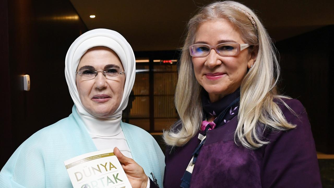 Ardından iki First Lady Cihannüma Salonu`nu gezdi ve burada bulunan yerkürenin önünde fotoğraf çekildi.