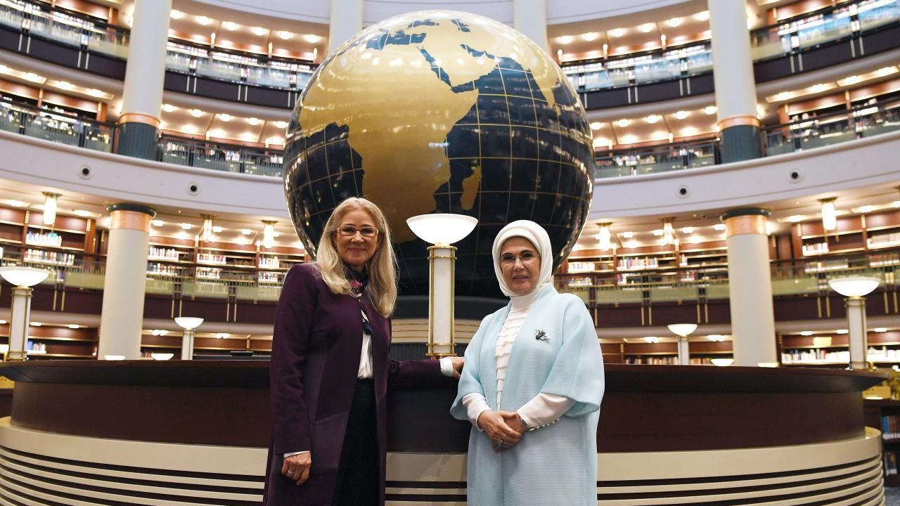 Cumhurbaşkanı Recep Tayyip Erdoğan'ın eşi Emine Erdoğan, resmi ziyaret için Türkiye'de bulunan Venezuela Cumhurbaşkanı Nicolas Maduro'nun eşi Cilia Flores de Maduro ile Millet Kütüphanesi'ni gezdi.