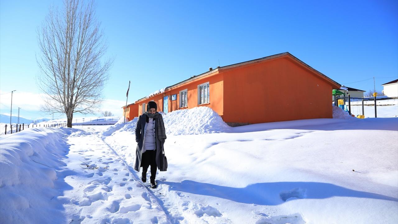 Eşiyle ilçe merkezine yerleşen Yılmaz, kış aylarında kar ve tipide her gün 40 kilometrelik yolu kat ettikten sonra okuluna ulaşıyor.