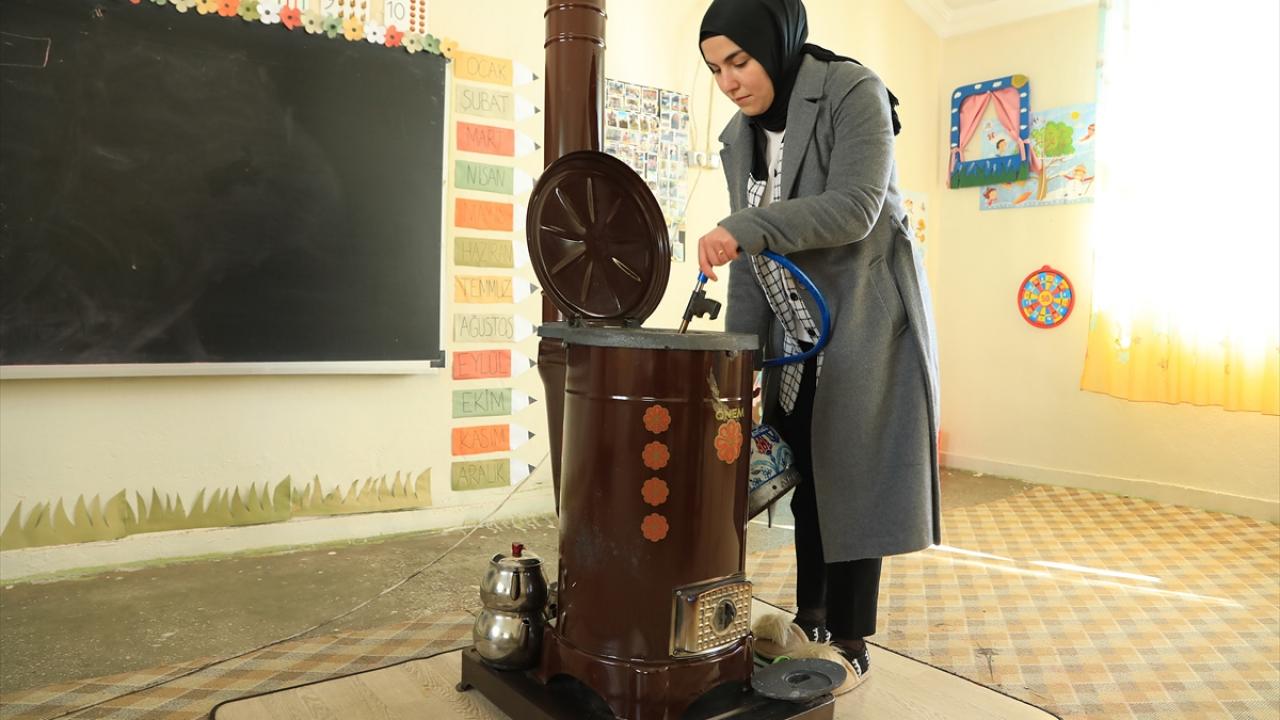 Her sabah sobayı yakarak sınıfı öğrenciler için hazırlıyor