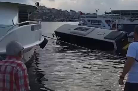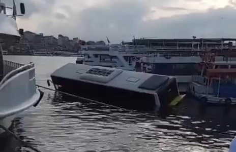 Ragıp Gümüşpala Caddesi`nde otobüs duraklarında park halinde bulunan bir İETT otobüsü, henüz belirlenemeyen nedenle kaymaya başladı. Denize düşen otobüs bir süre sonra suya gömüldü.