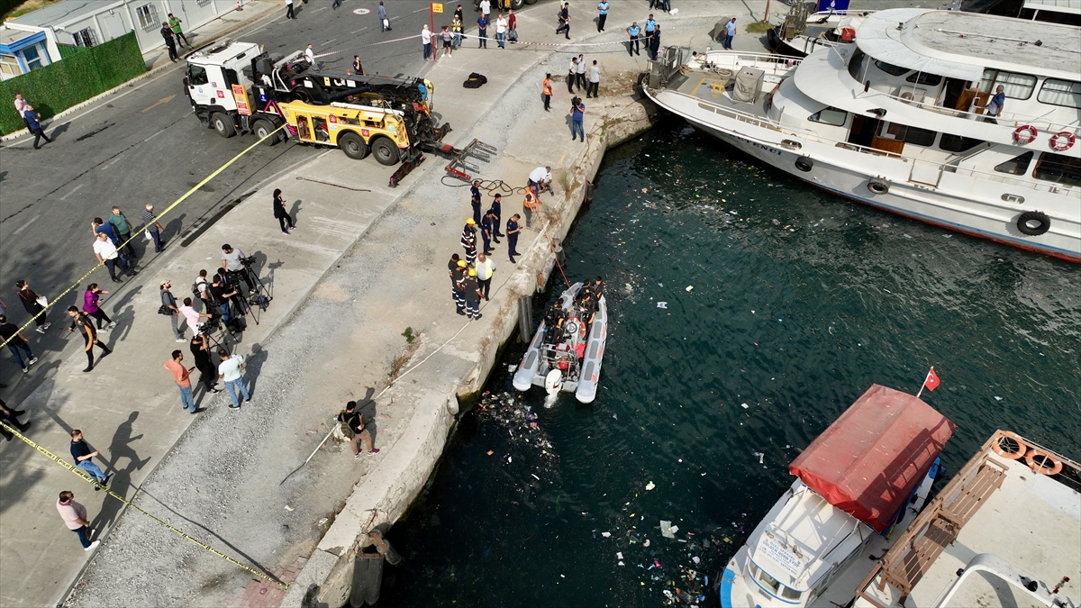 Ekipler, otobüsü denizden çıkarmak için çalışma başlattı.