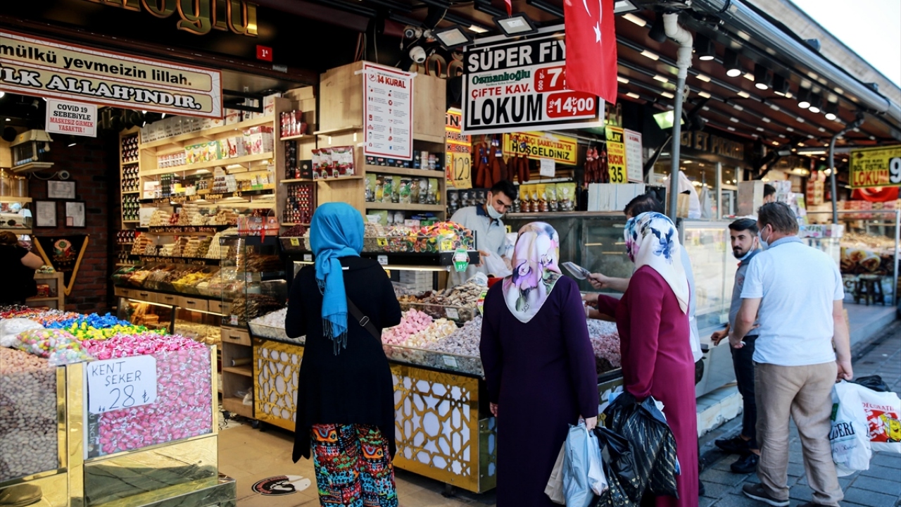 Vatandaşların bayram alışverişi için lokum, şeker ve kuru kahve satın aldığı gözlendi.