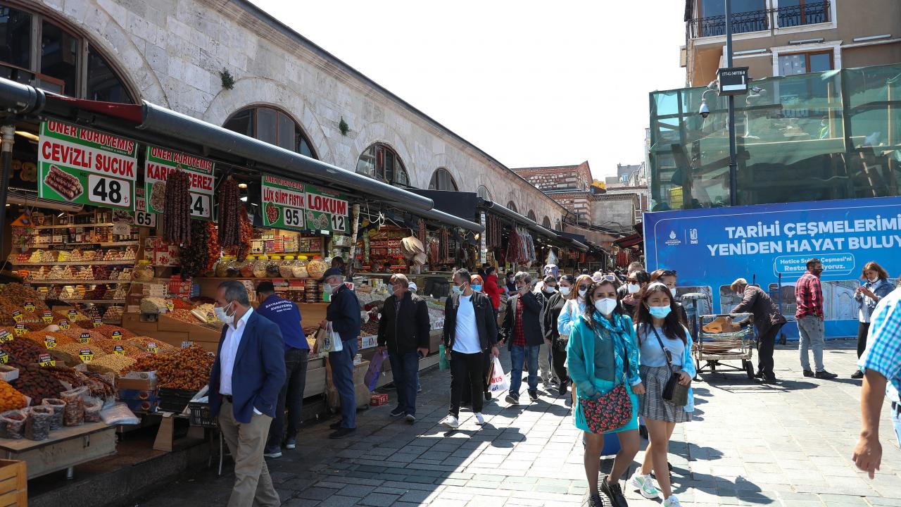 Ramazan ayının ilk haftasında alışveriş yapmak isteyen vatandaşlar Eminönü'ne akın etti. Kahve, lokum, kahvaltılık alışverişi yapan vatandaşların sosyal mesafe ve koronavirüs tedbirlerine uymadığı görüldü.