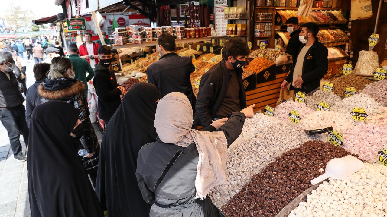 Kapanma öncesi çok sayıda kişi alışveriş için akın akın Mısır Çarşısı`na geldi.