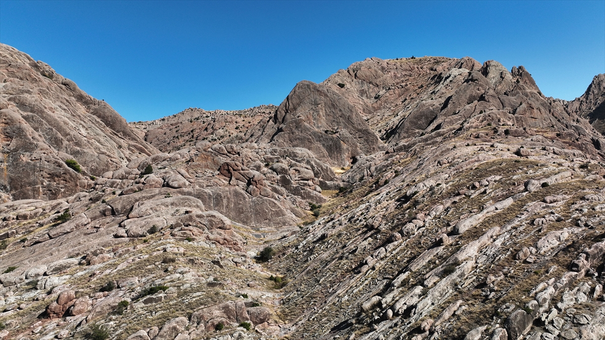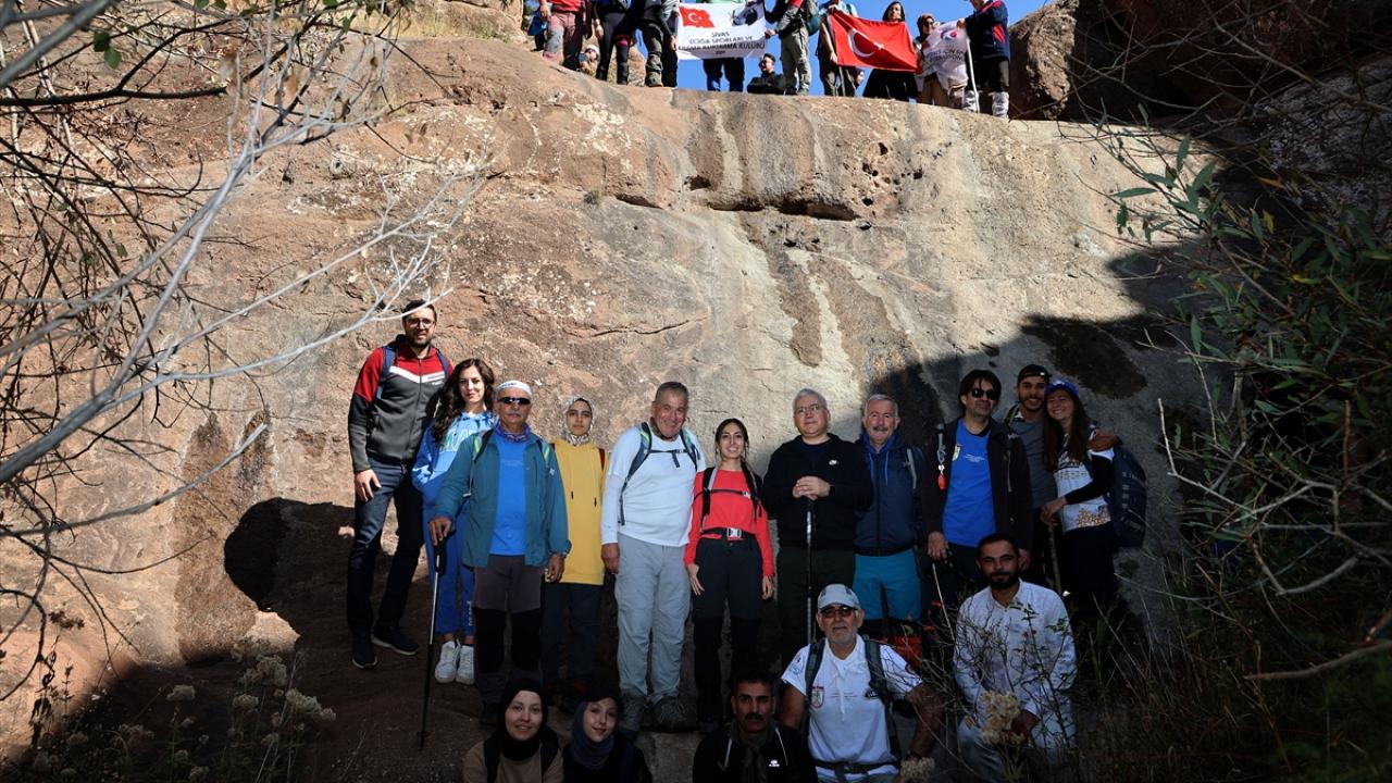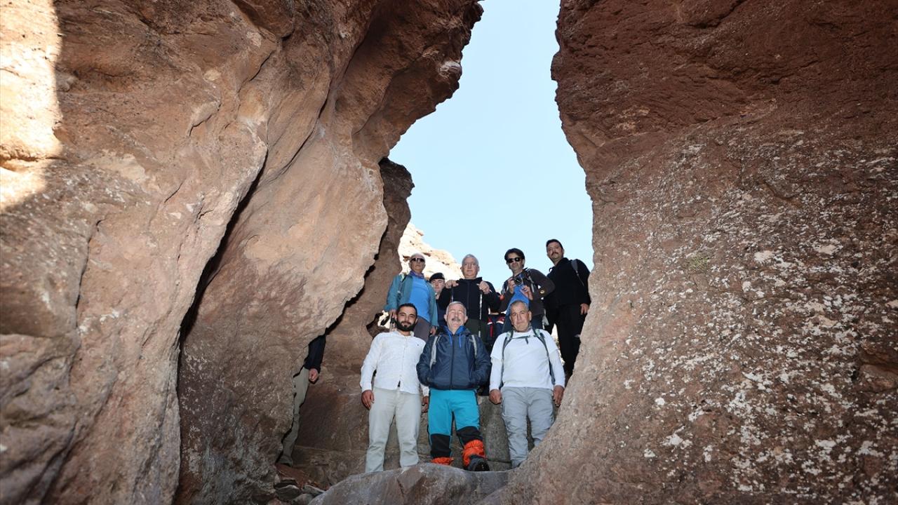 Yaklaşık 4 saatlik yürüyüş ve tırmanışın ardından zirveye ulaşan Şimşek ve beraberindekiler, doğal oluşumlar karşısında hayranlıklarını gizleyemedi.