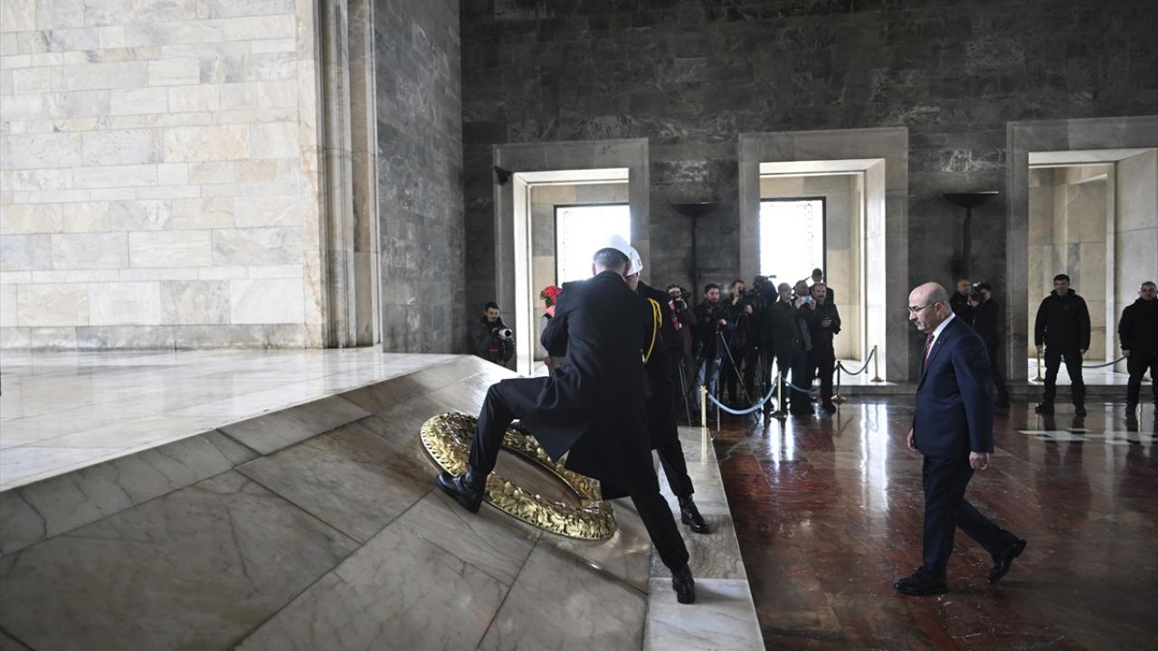 Aslanlı Yol`dan yürüyerek Gazi Mustafa Kemal Atatürk`ün mozolesine gelen heyet, Demirtaş`ın çelenk bırakmasının ardından saygı duruşunda bulundu.