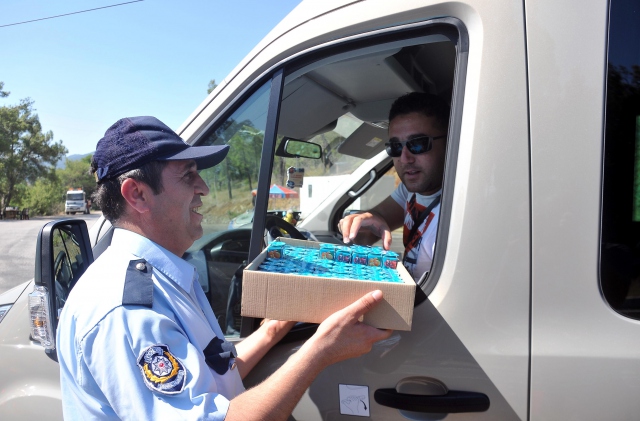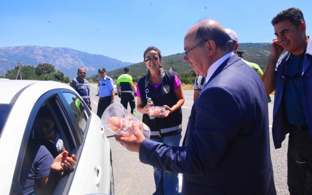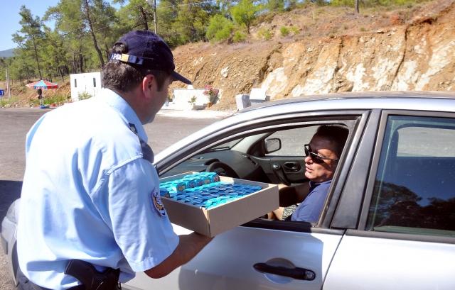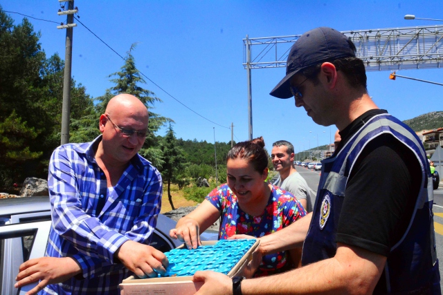 Ramazan Bayramı dolayısıyla trafiğin yoğunlaştığı Muğla-Denizli, Muğla-Aydın, Milas-Bodrum, Gökova-Marmaris ve Fethiye-Dalaman güzergahında polis ekipleri, sürücülere kolonya, lokum ve şeker ikram etti.