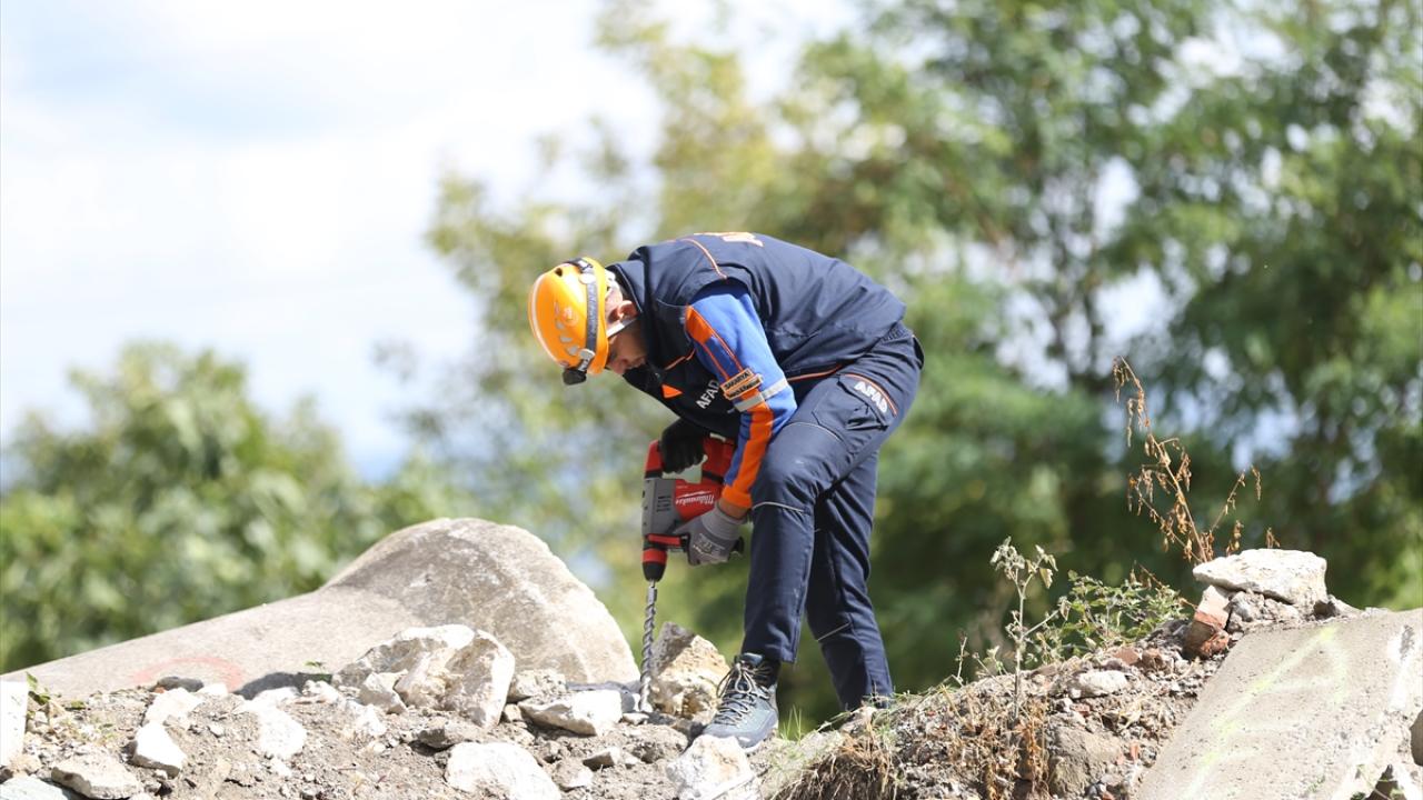 Zorlu sınavda eğitmeninin direktifleri doğrultusunda hareket eden köpekler, enkaza saklanan canlı hedefleri hassas burunlarıyla en az hatayla bulmaya çalışıyor.