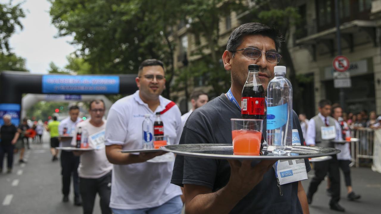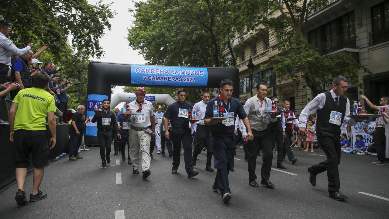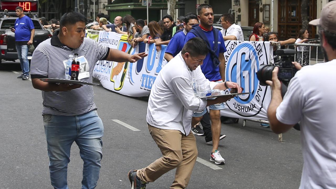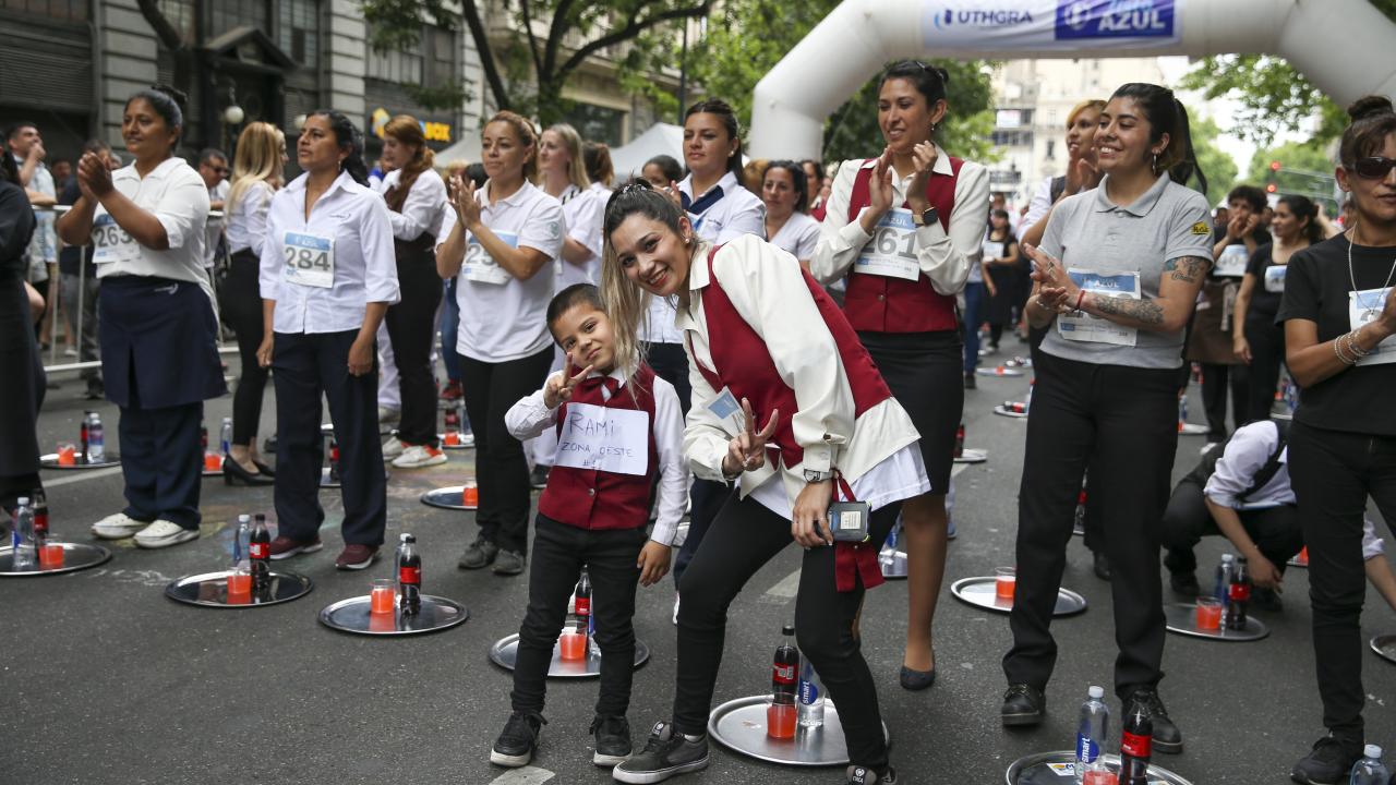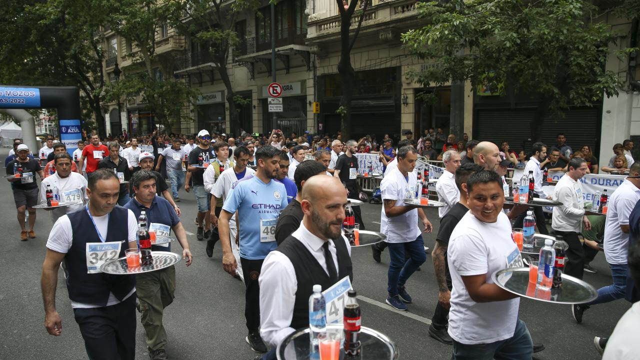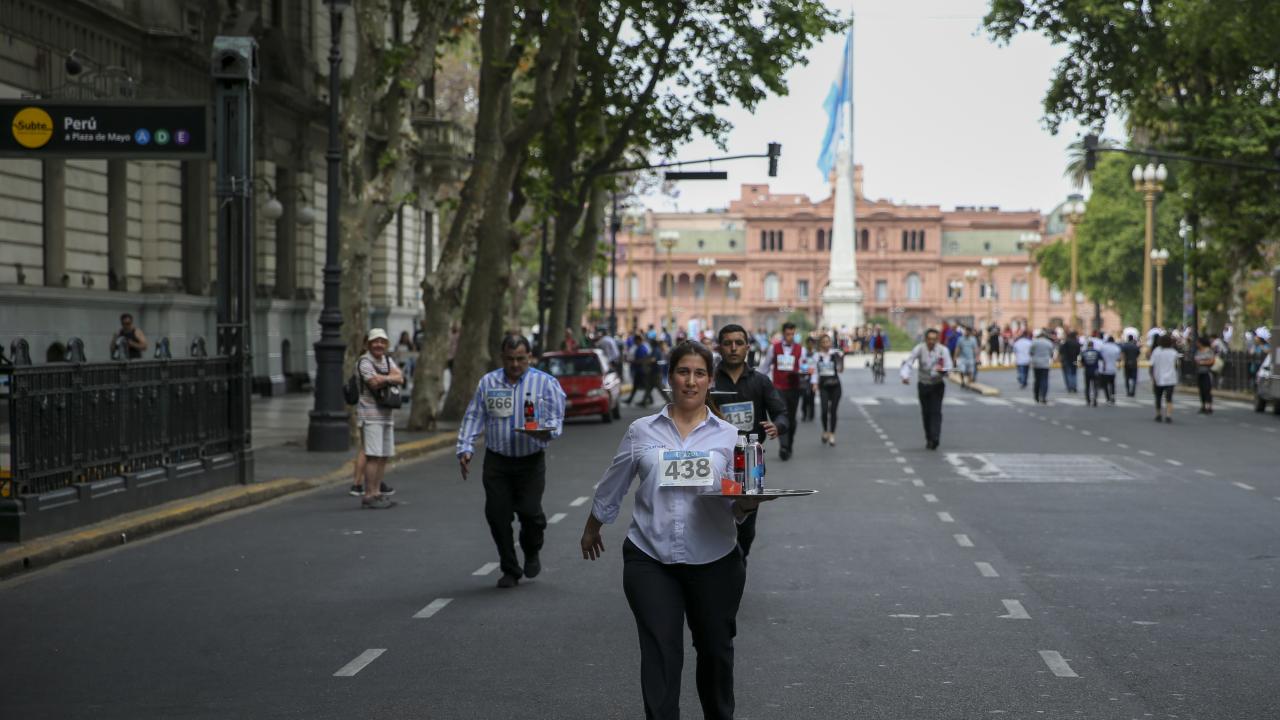 Arjantin'in başkenti Buenos Aires'te garsonlar, ellerinde tepsileriyle en hızlı çalışan olmak için ter döktü.