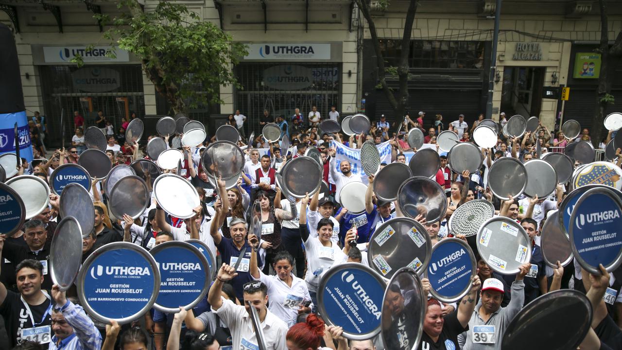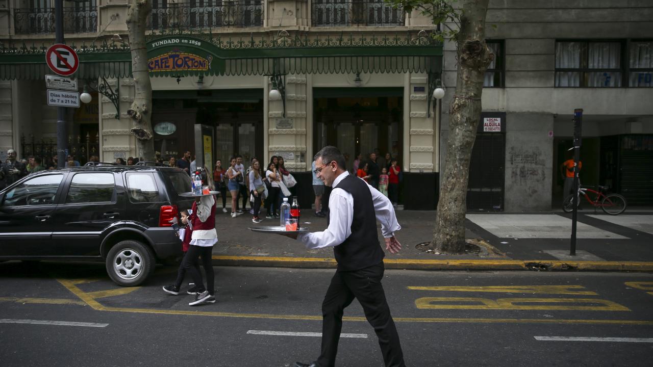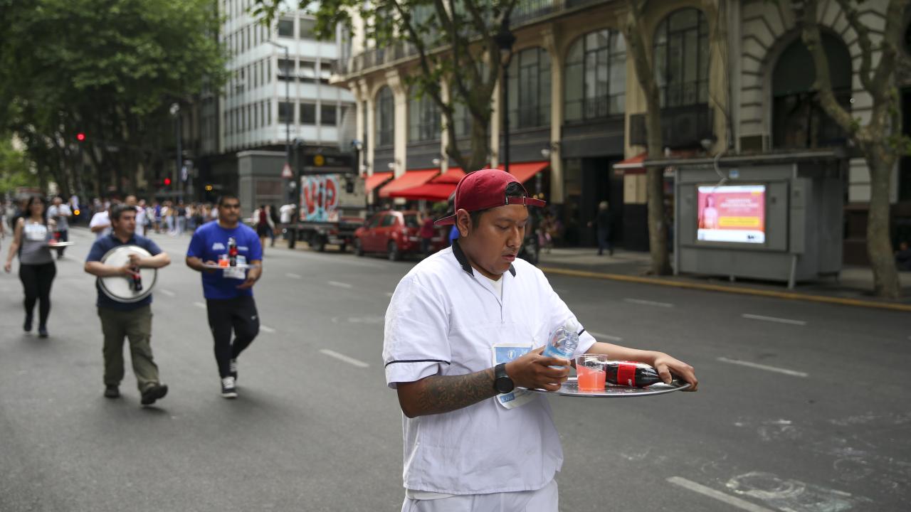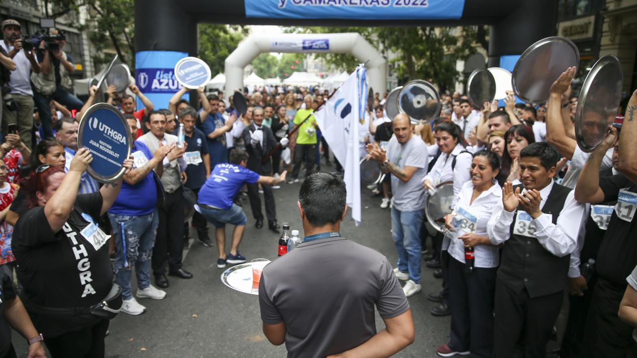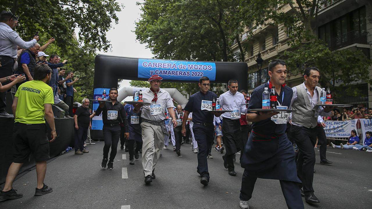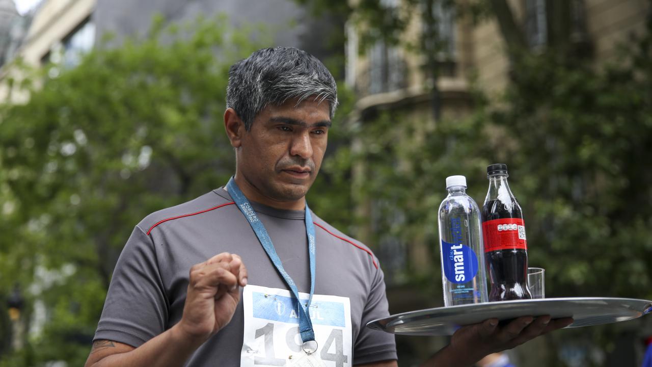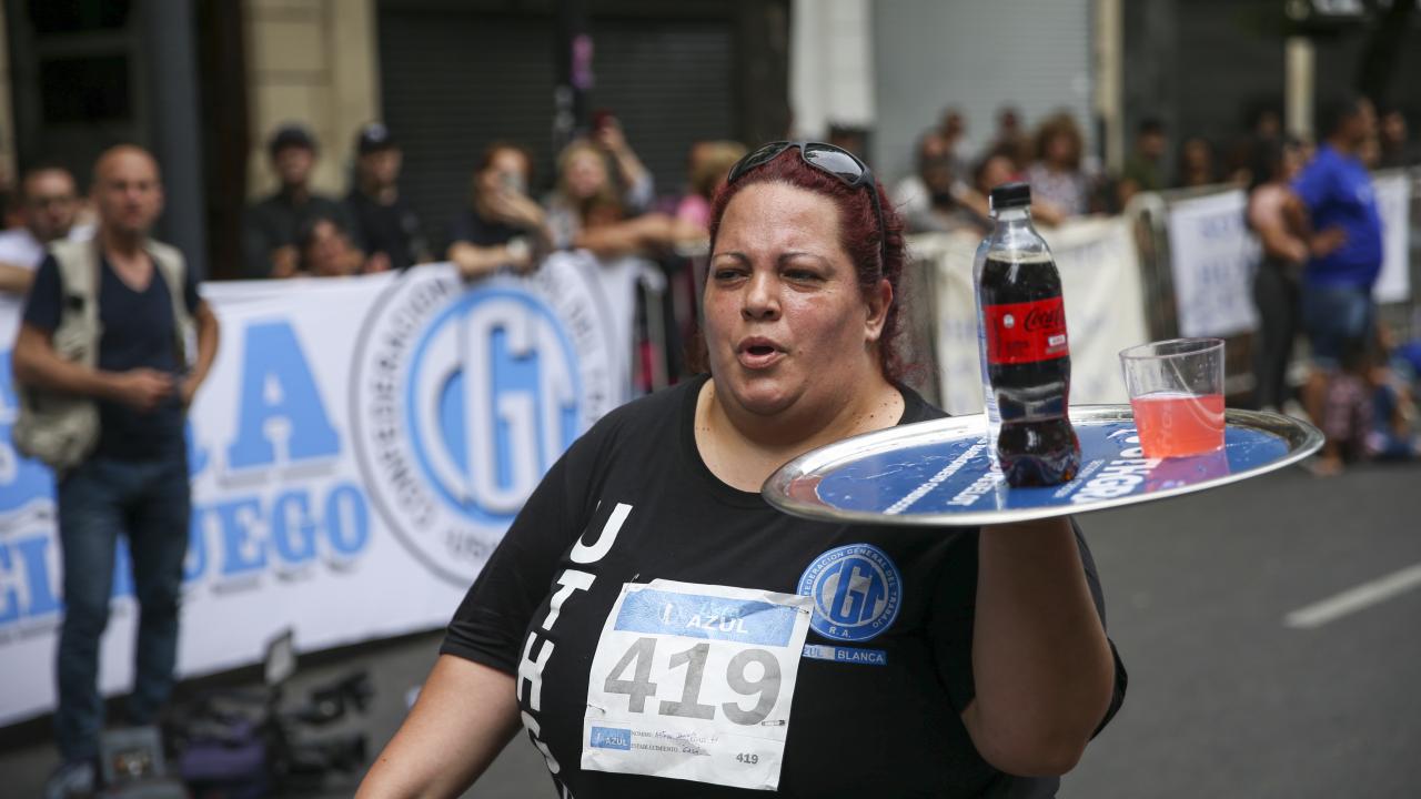 Arjantin'in başkenti Buenos Aires'te garsonlar, ellerinde tepsileriyle en hızlı çalışan olmak için ter döktü.