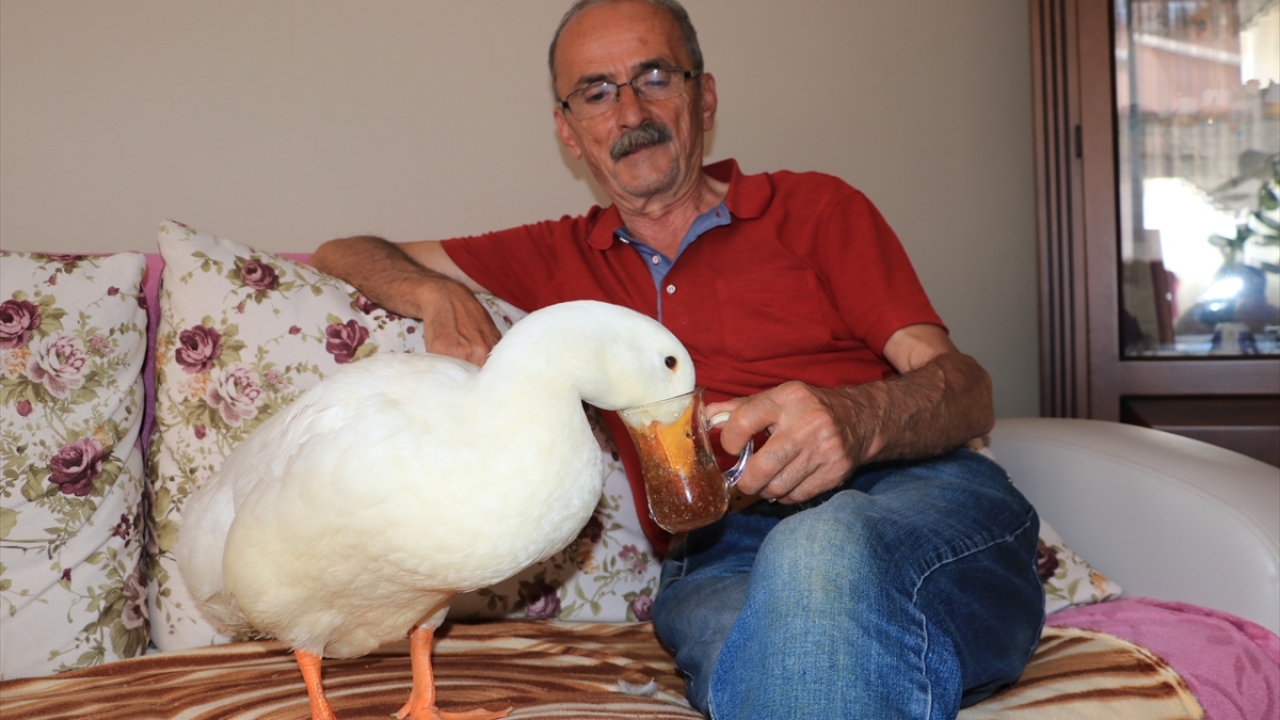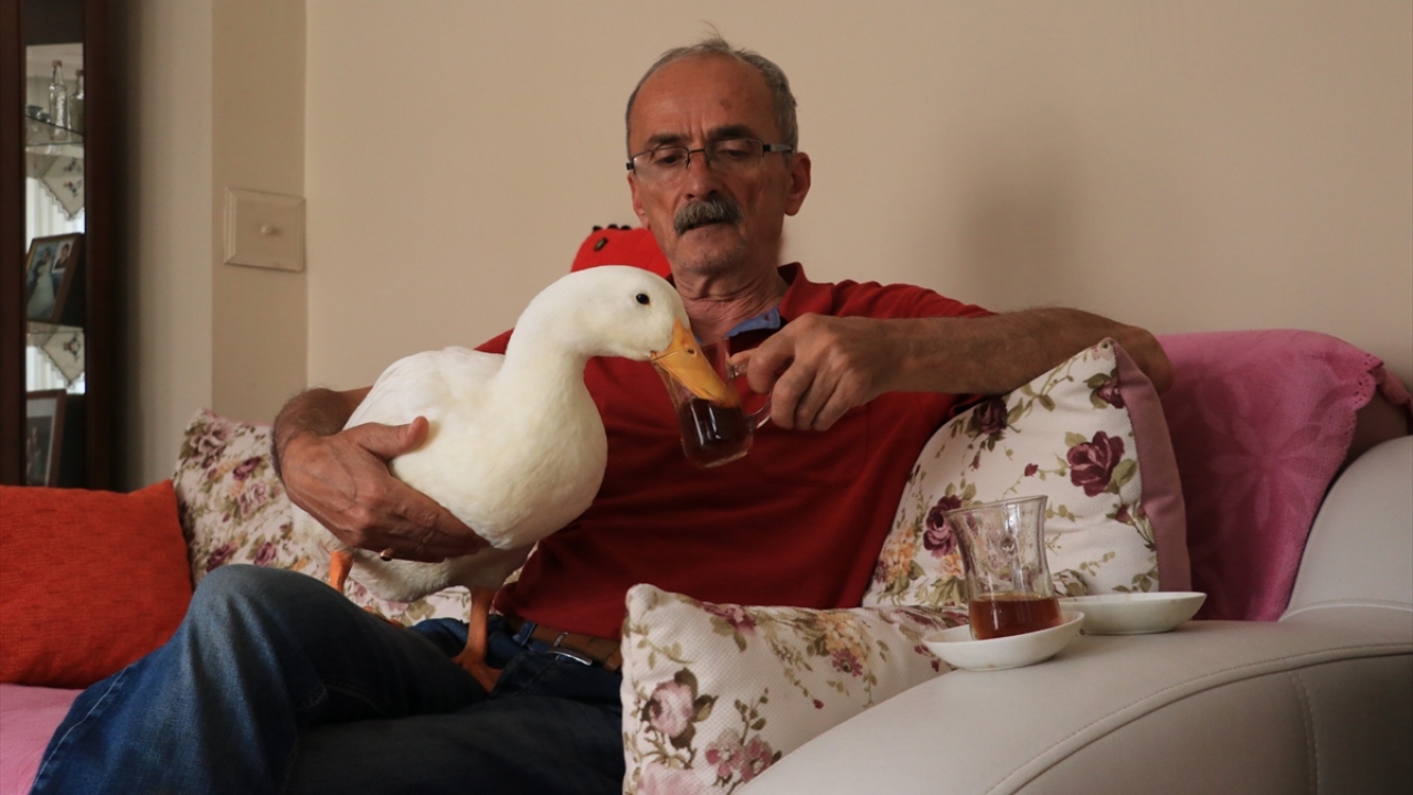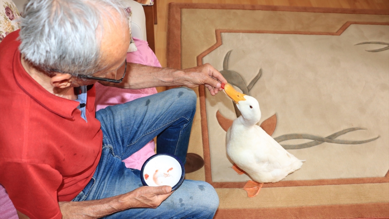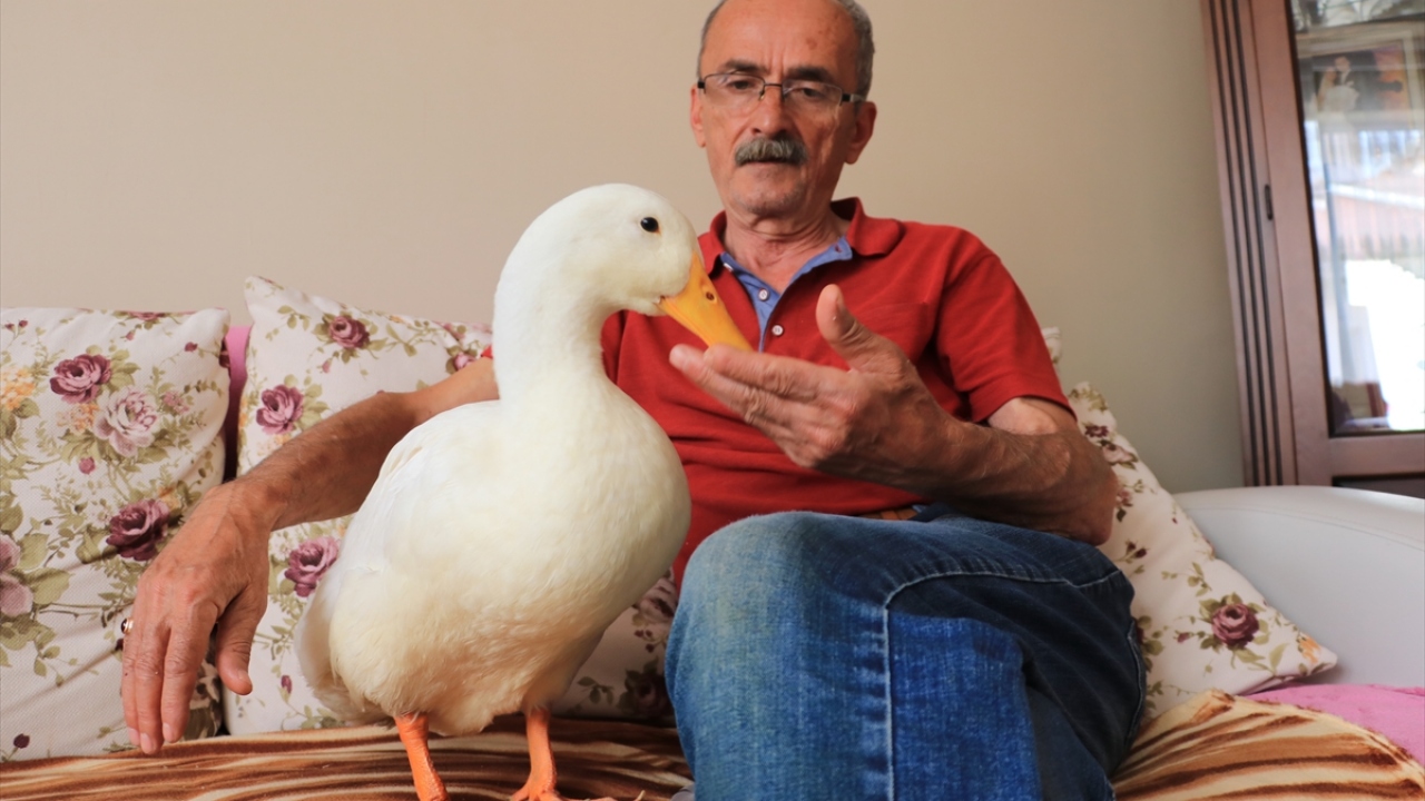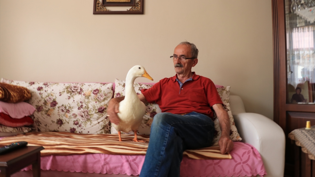 Kastamonu'da 66 yaşındaki Nevzat Aydın, "Pamuk" adını verdiği ördeğini yanından hiç ayırmıyor.