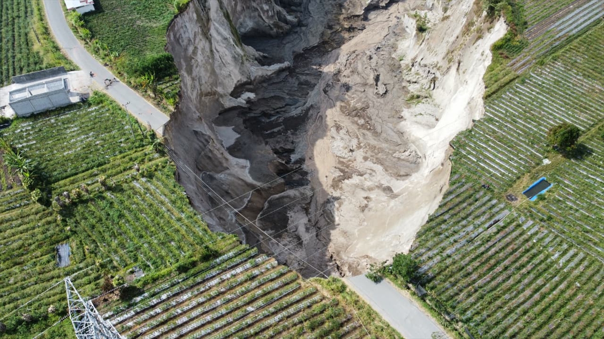 Endonezya’nın Açe eyaletine bağlı Ketol bölgesinde 100 metre derinliğinde ve 30.000 metrekareden fazla alanı kaplayan devasa bir toprak çökmesi meydana geldi.