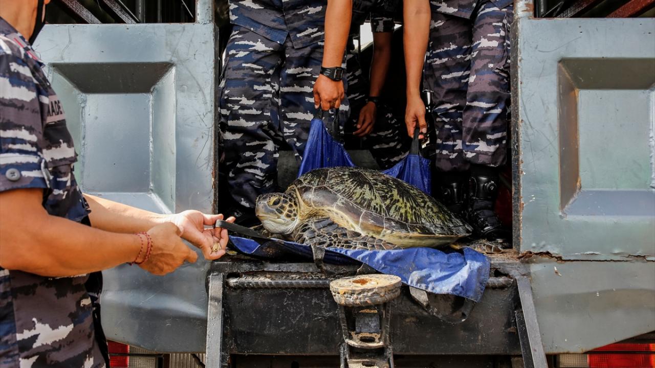 Donanma yetkilileri yaptığı açıklamada, avcıların gemilerinin durdurulduğunu, bir gecede 32 deniz kaplumbağasının başarıyla kurtarıldığını ve 21 kişilik mürettebatın gözaltına alındığını bilgisi paylaşıldı.