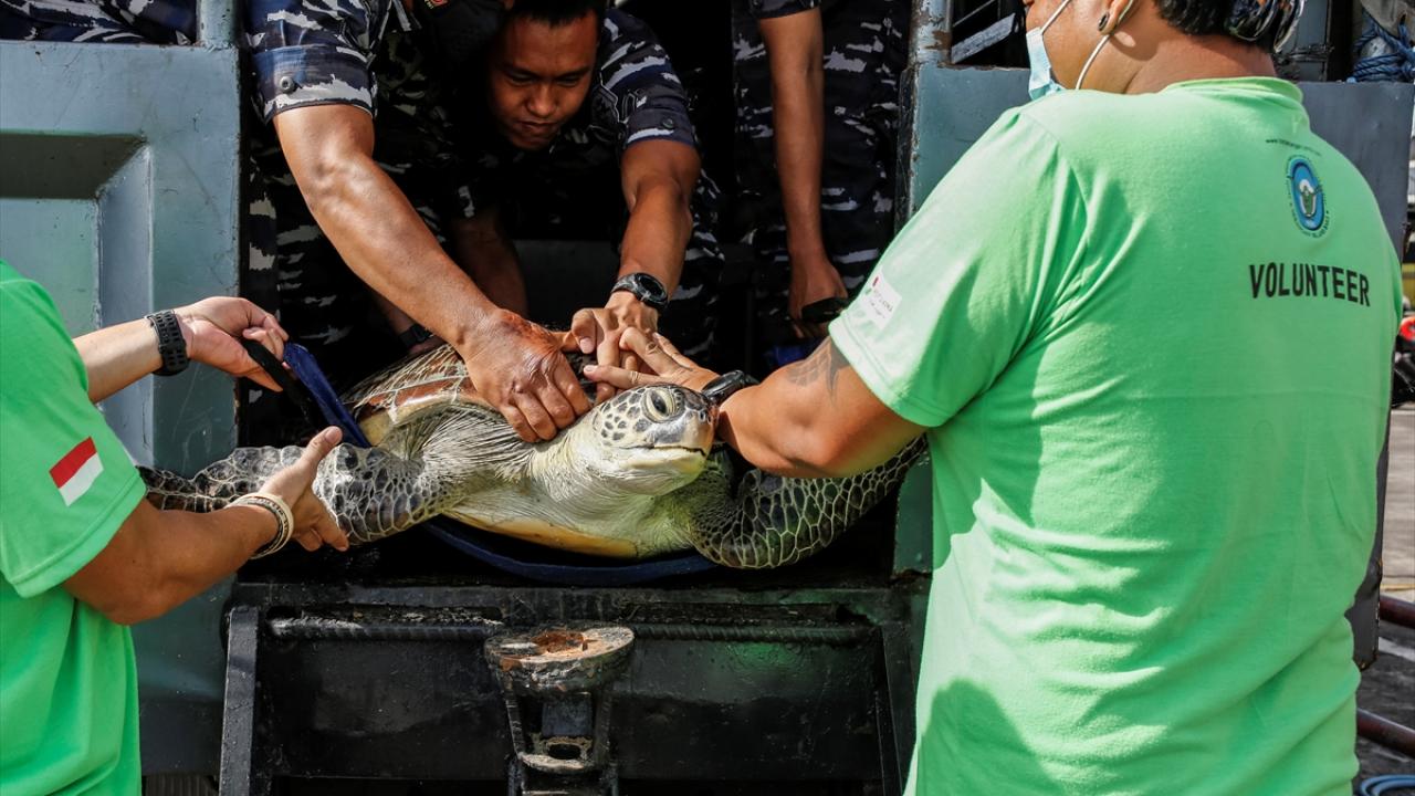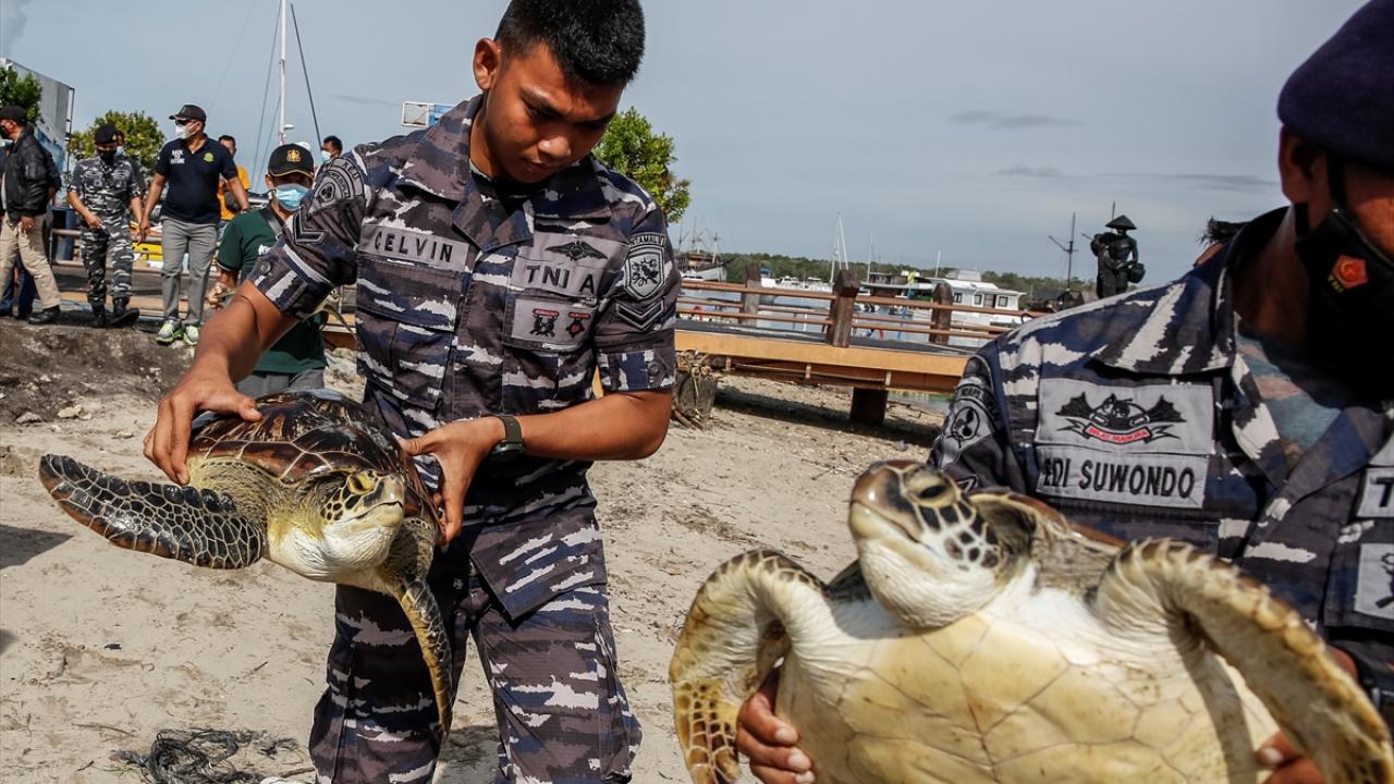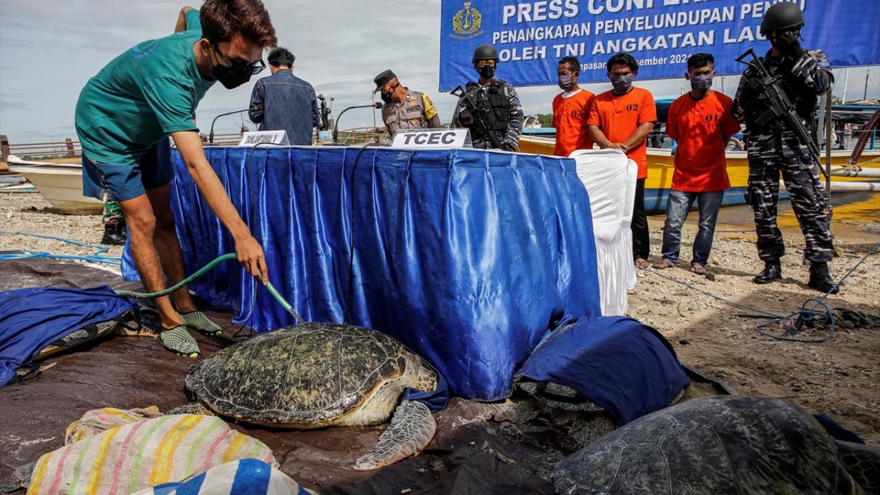 Kurtarılan kaplumbağalar, doğal ortamlarına bırakılmadan önce Güney Denpasar Serangan Adası`ndaki Kaplumbağa Koruma ve Eğitim Merkezinde rehabilite edilecek.