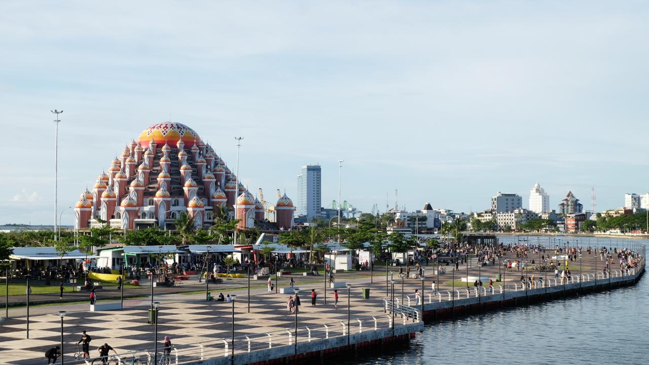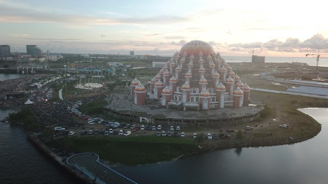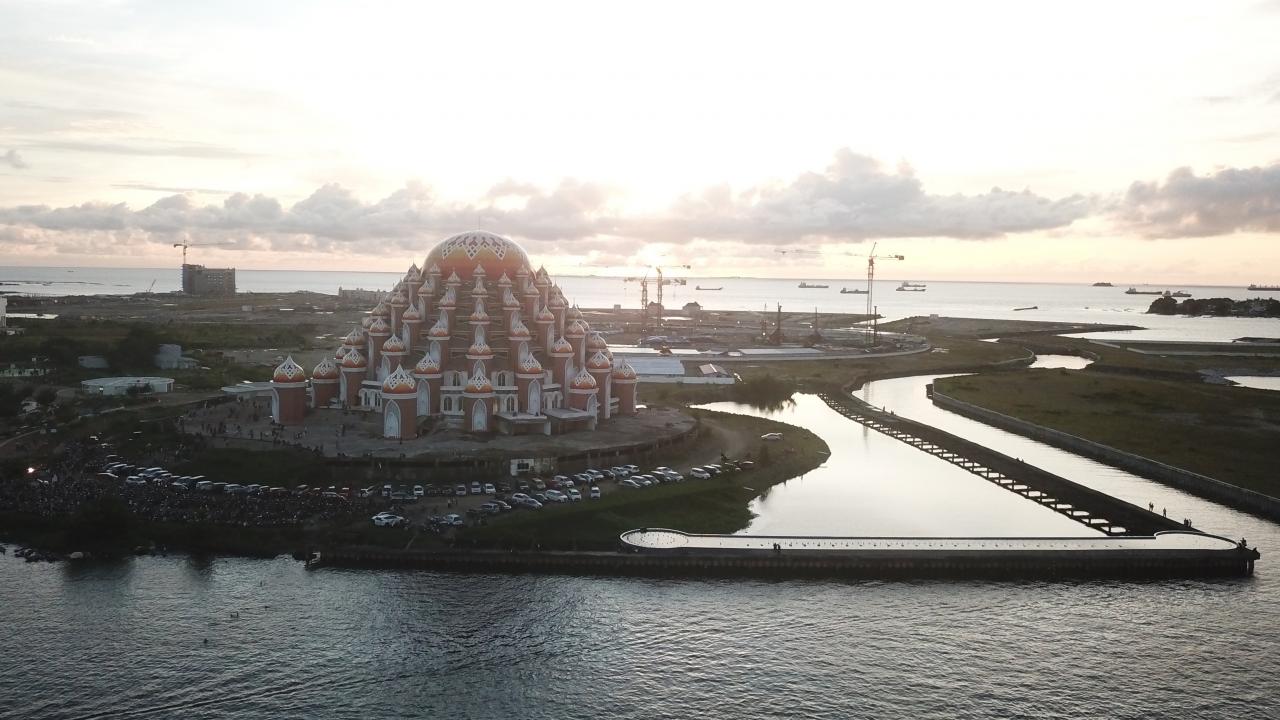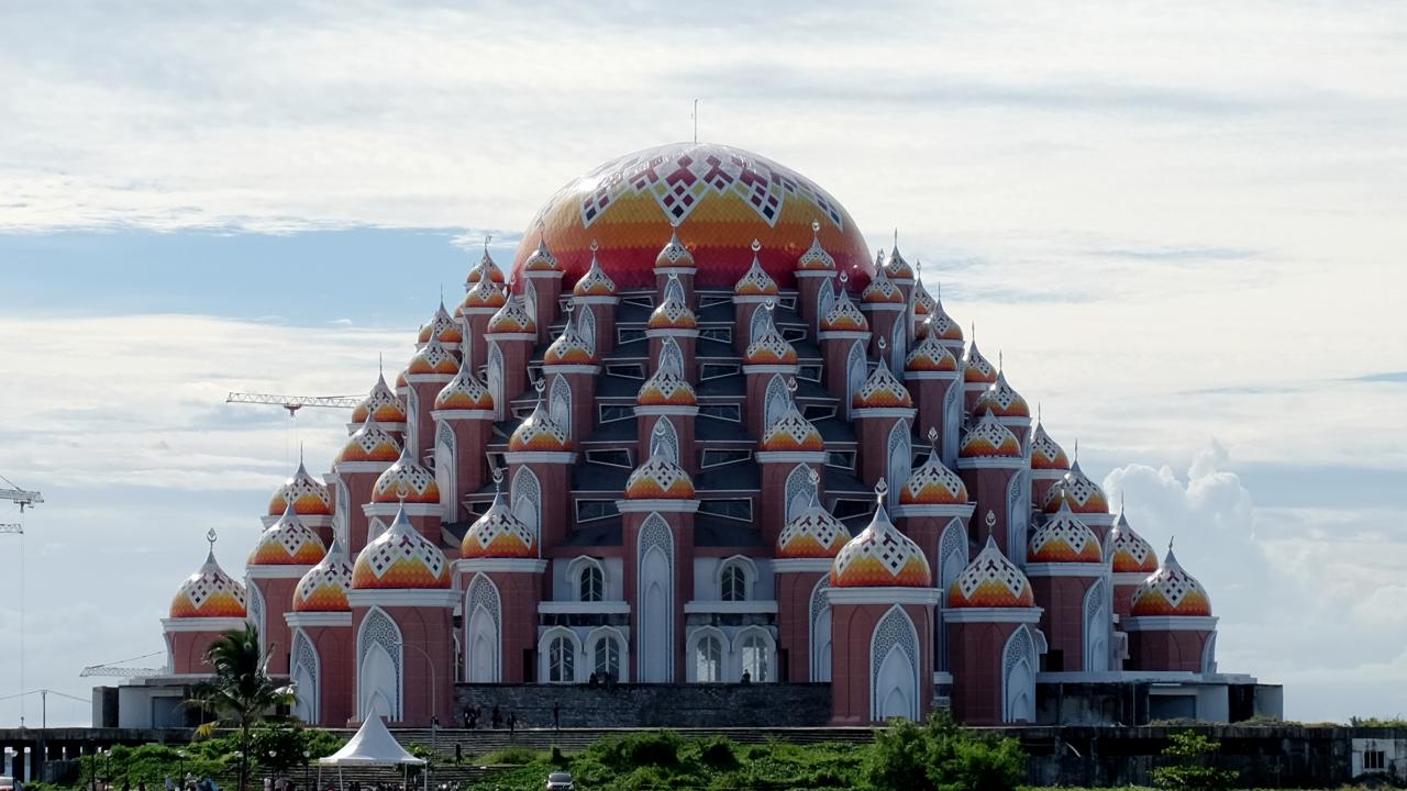Endonezya’nın Güney Sulawesi eyaletindeki Makassar kentinde bulunan 99 Kubbeli Camii, tasarımıyla dikkat çekiyor.