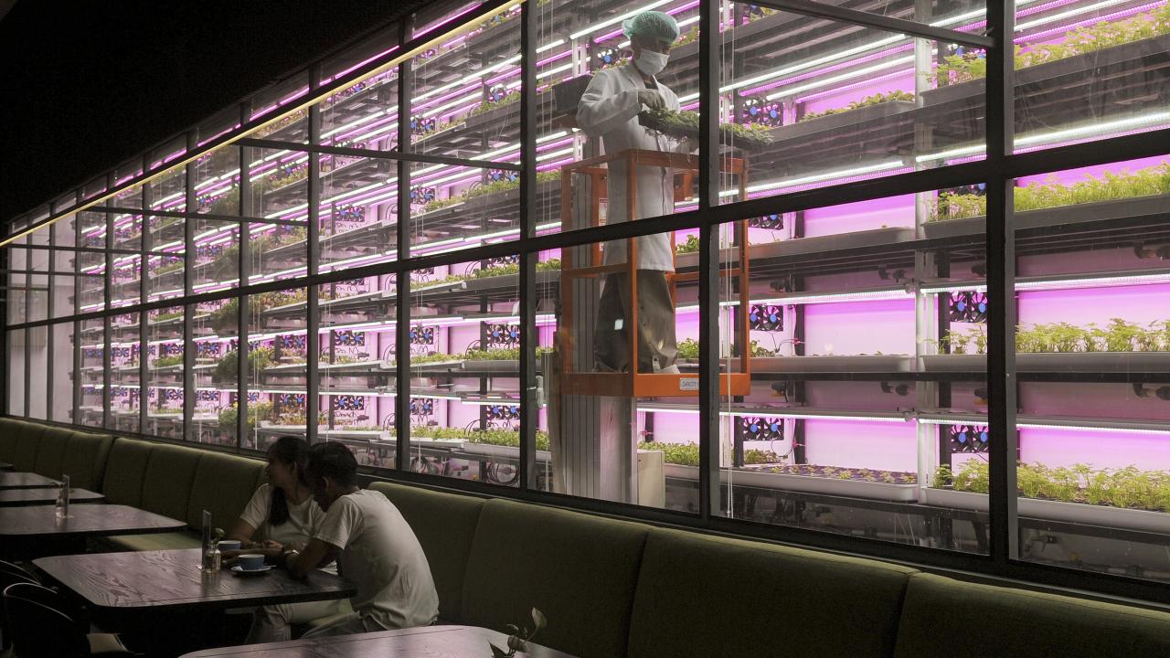 Endonezya’nın Cava adasına bağlı Güney Tangerang kentindeki bir kafe restoranda, mutfakta kullanılacak birçok sebze, yapay ışık teknolojisi kullanılarak kapalı alanda tarım uygulaması ile üretiliyor.