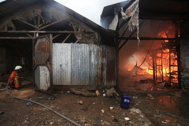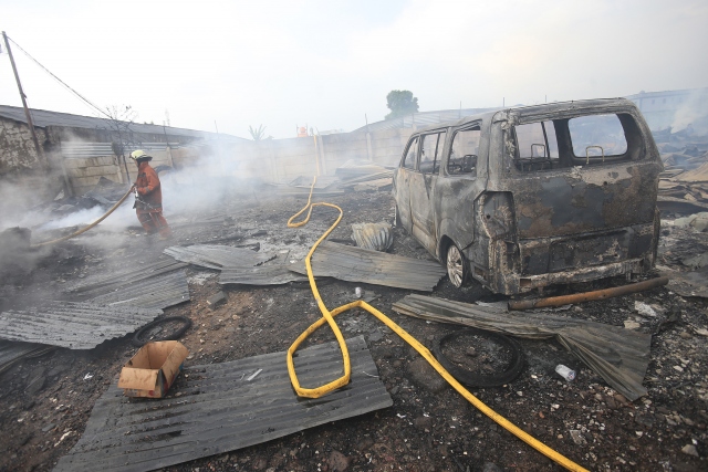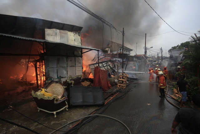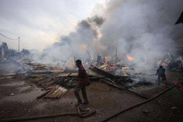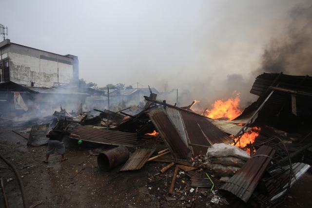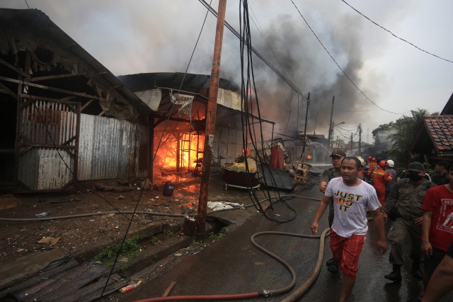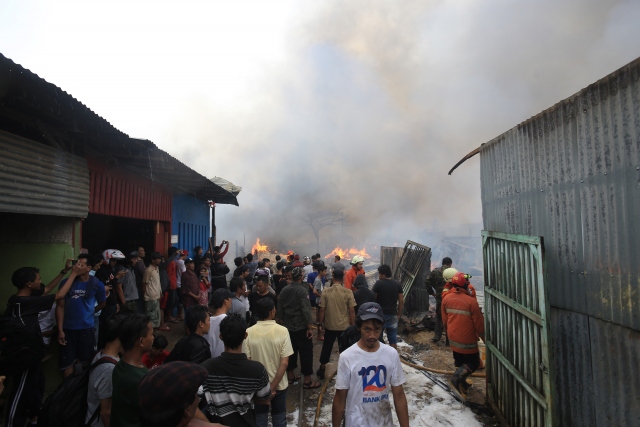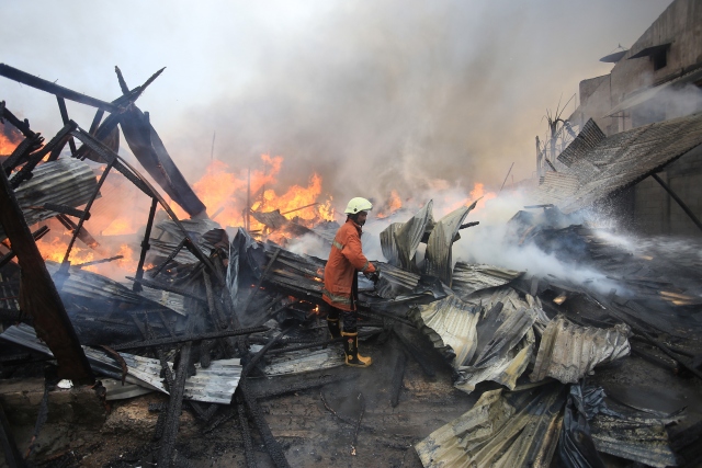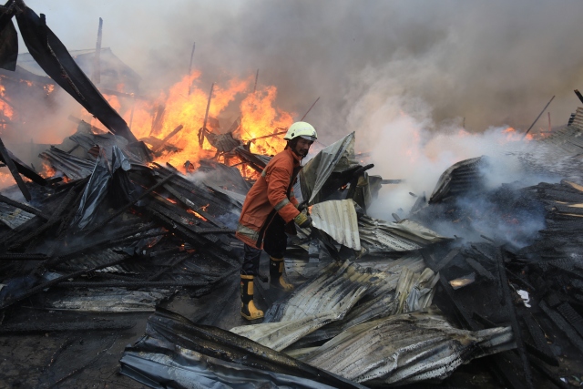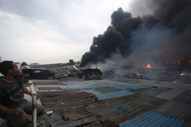 Endonezya'nın başkenti Cakarta'daki gecekondu bölgesinde büyük çaplı yangın çıktı. Yaklaşık 100 ailenin evlerini kaybettiği yangını söndürmek için 20'den fazla itfaiye aracı müdahalede bulundu.