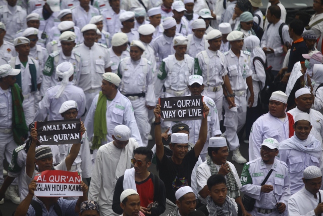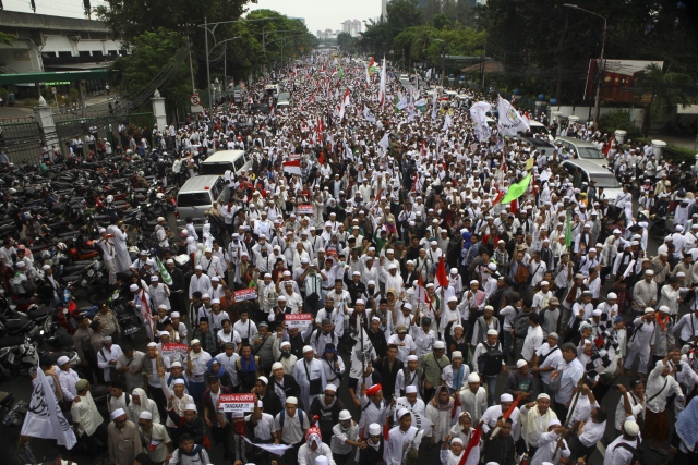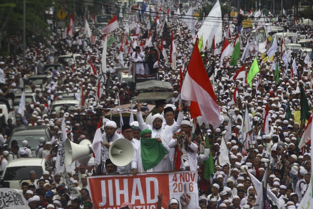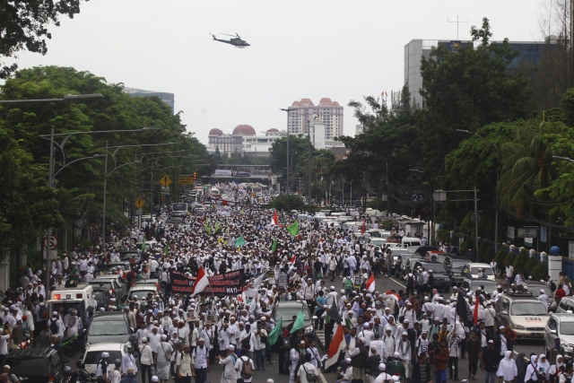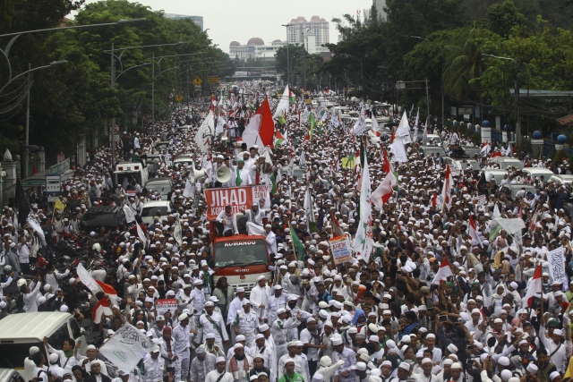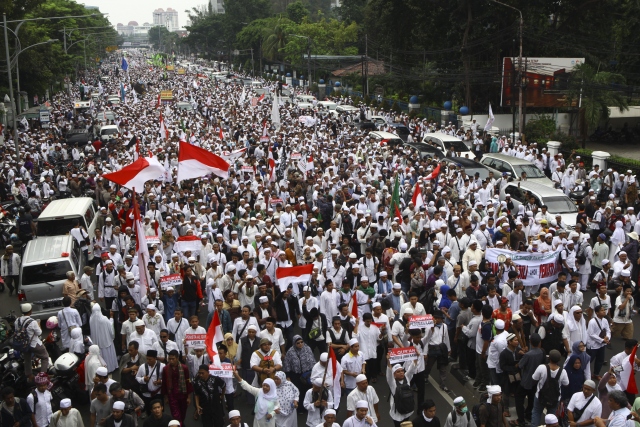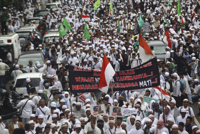 Endonezya'da İslam Savunucuları Cephesi (FPI) grubunun üyesi yaklaşık binlerce kişi, İslamiyet'e hakaret ettiği ileri sürülen Cakarta Valisi Basuki Tjahaja Purnama'yı protesto etti. Kalabalık, "Ahok" adıyla anılan Purnama'nın İslamiyet'e hakaret ettiği gerekçesiyle yargılanmasını talep etti.
