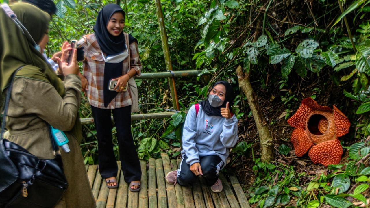 Endonezya'nın Bengkulu kentinde bir evin bahçesinde ceset çiçeği olarak da bilinen "Rafflesia arnoldii" açtı.