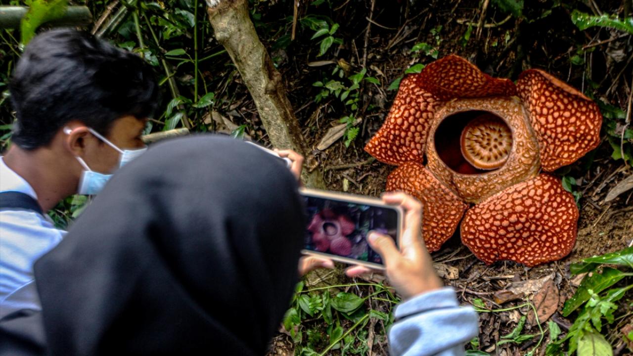 Endonezya'da ceset çiçeği olarak da bilinen 'Rafflesia arnoldii' açtı
