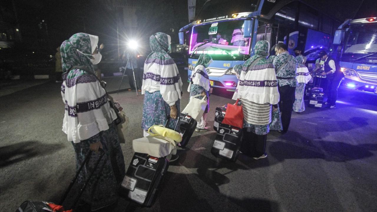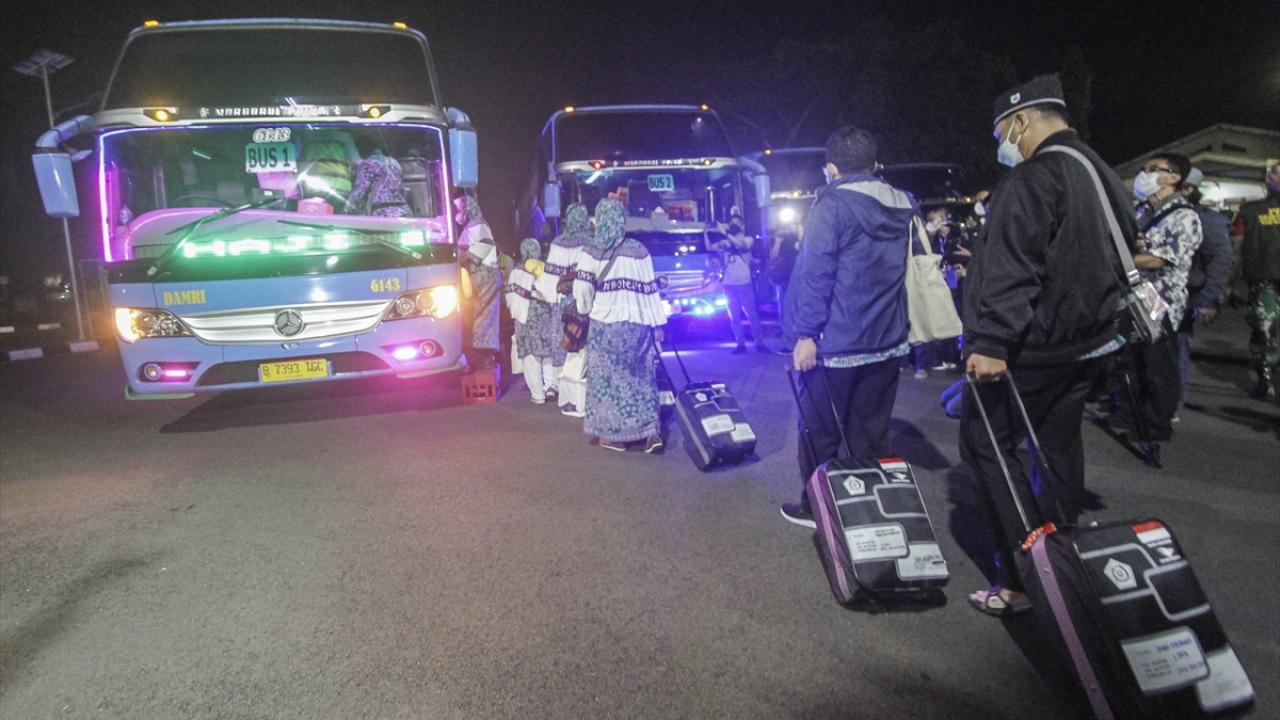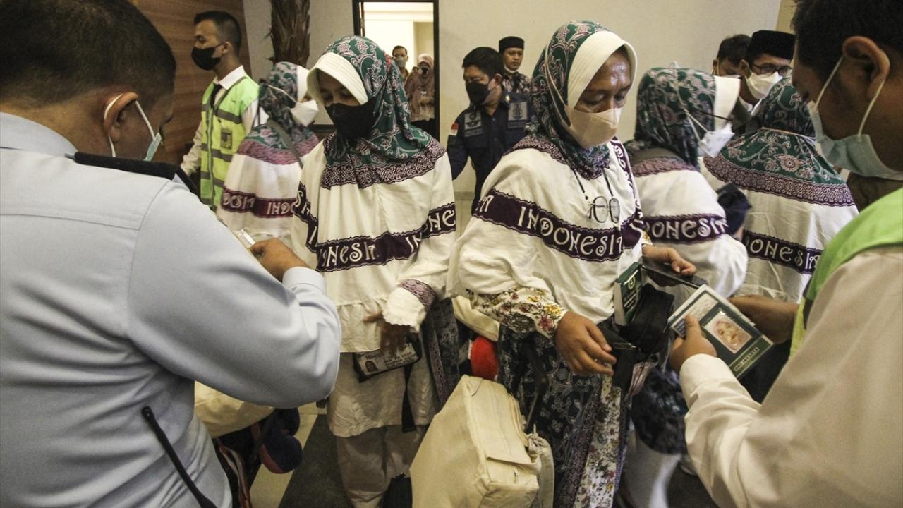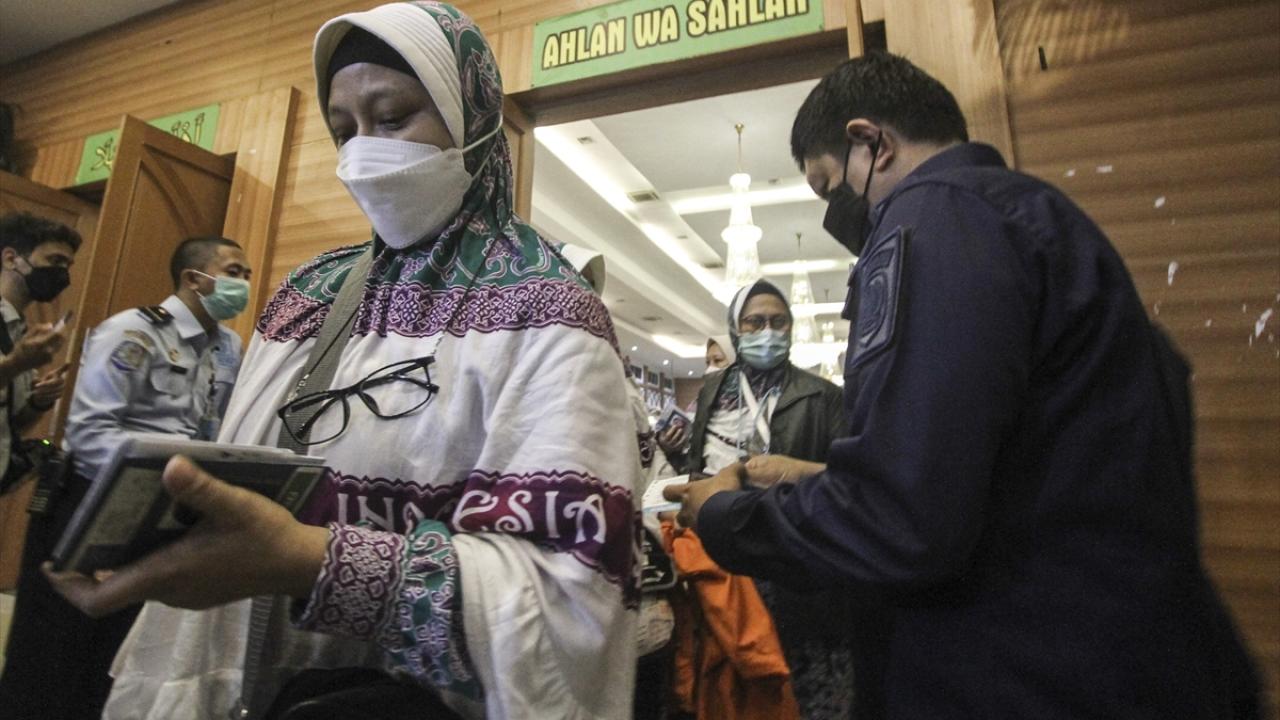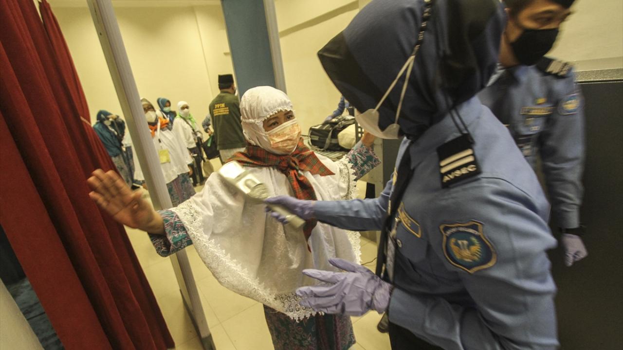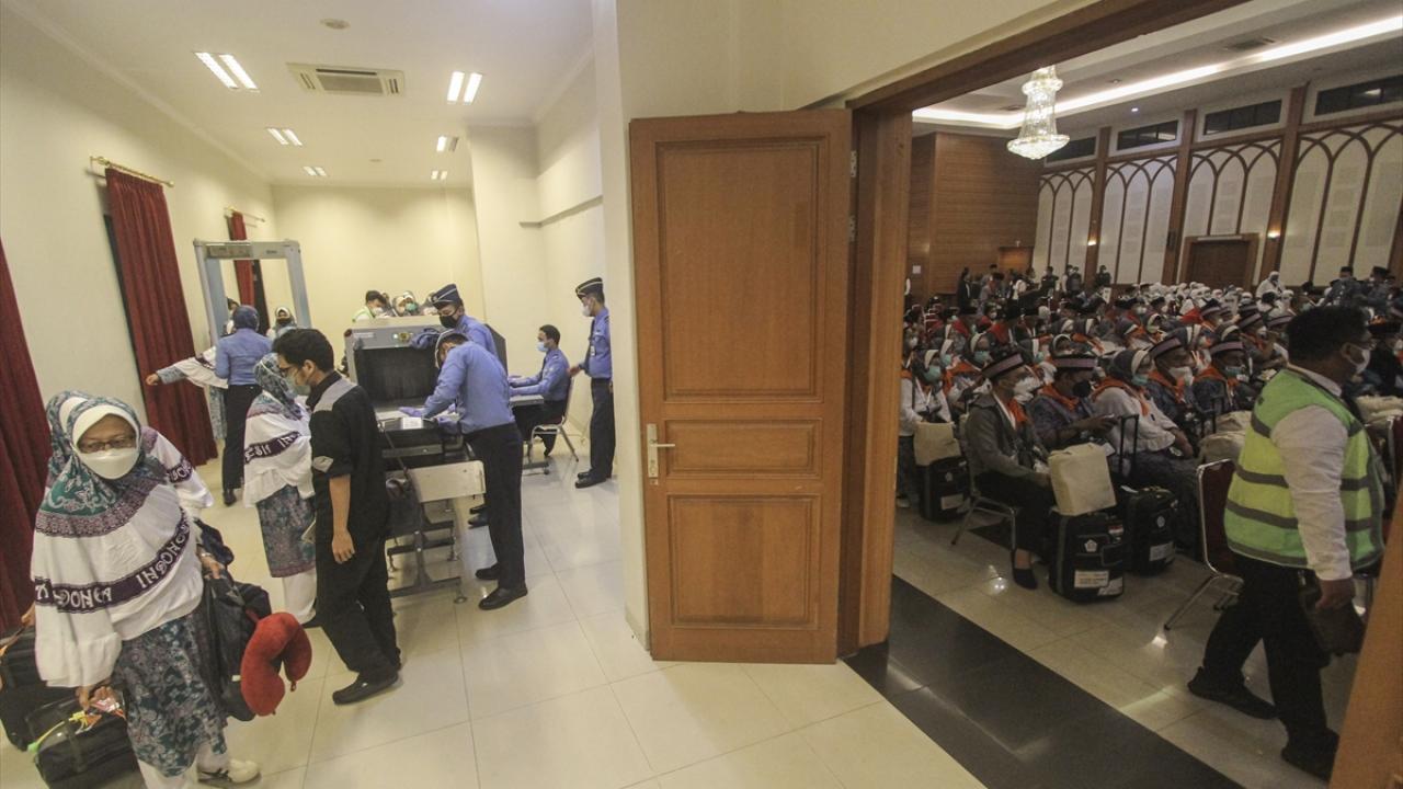 Endonezya'nın başkenti Cakarta'da hac vazifesini yerine getirmek üzere kutsal topraklara gidecek hacı adayları Soekarno Hatta Uluslararası Havalimanı'na geldi.