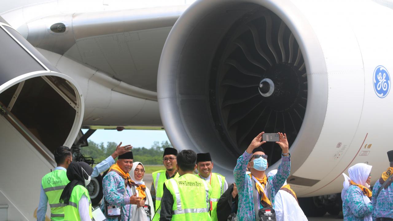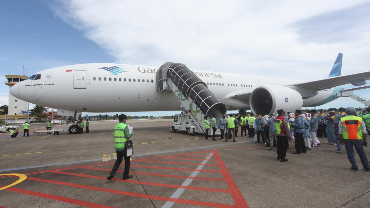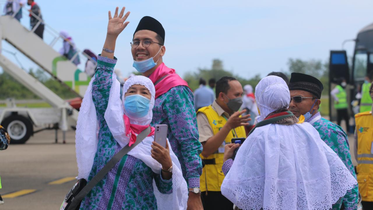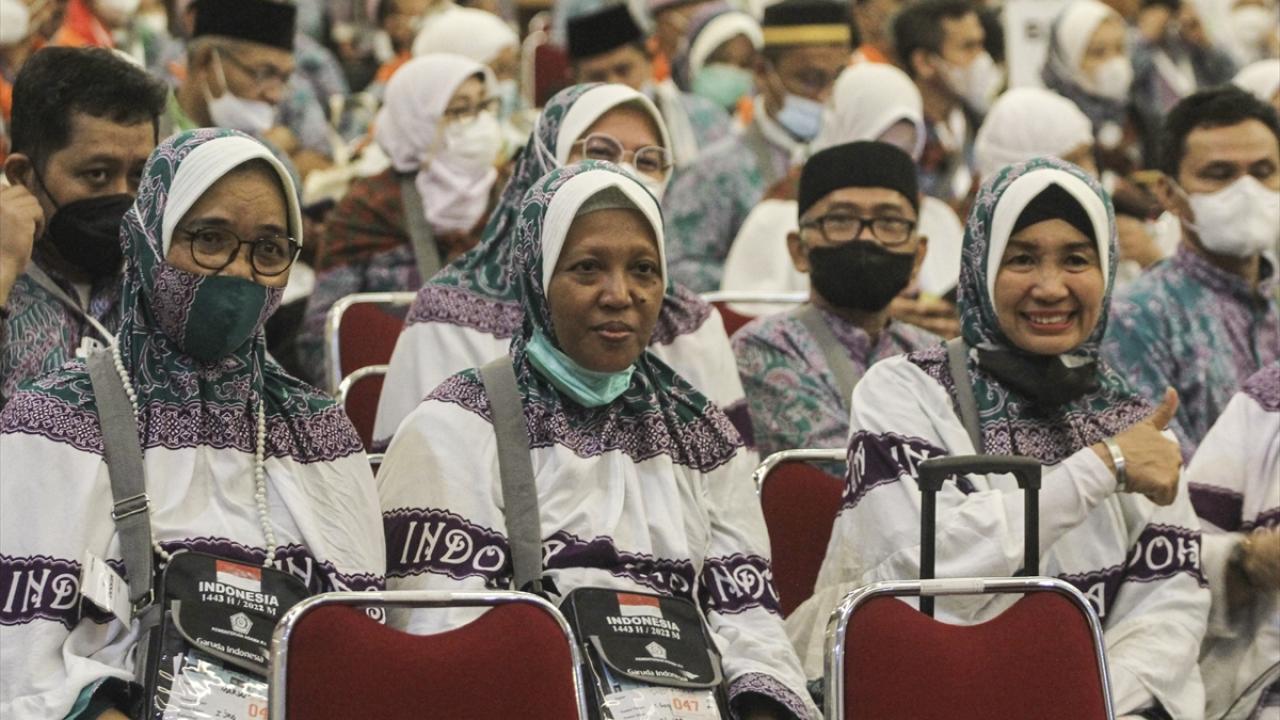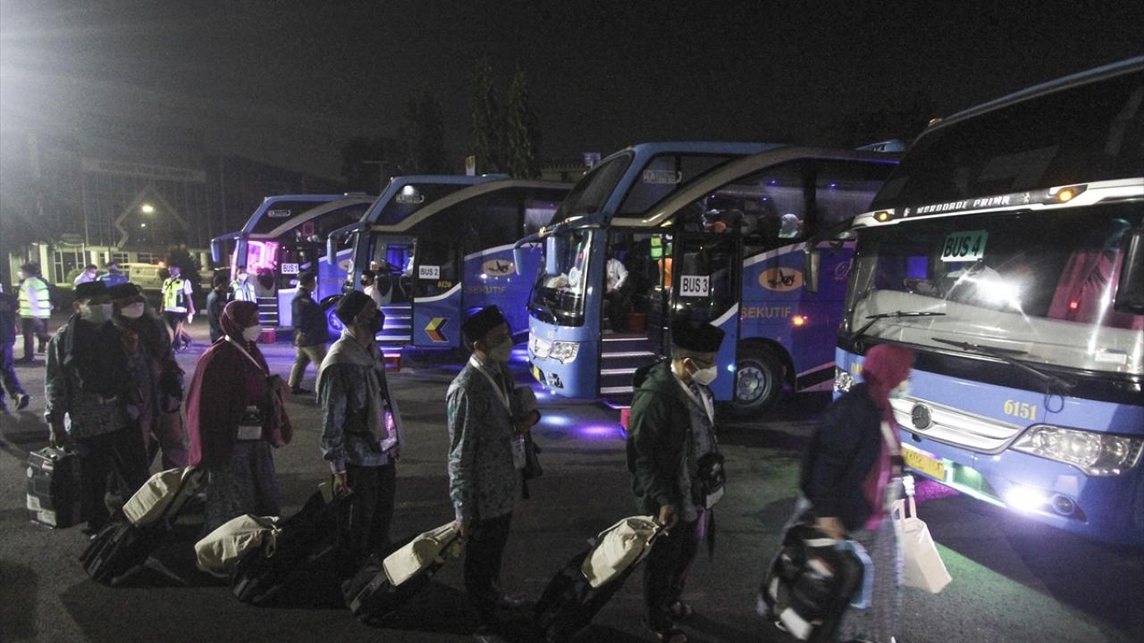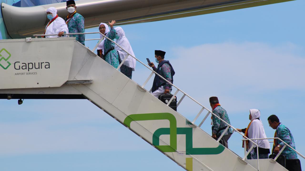 Endonezya'nın başkenti Cakarta'da hac vazifesini yerine getirmek üzere kutsal topraklara gidecek hacı adayları Soekarno Hatta Uluslararası Havalimanı'na geldi.