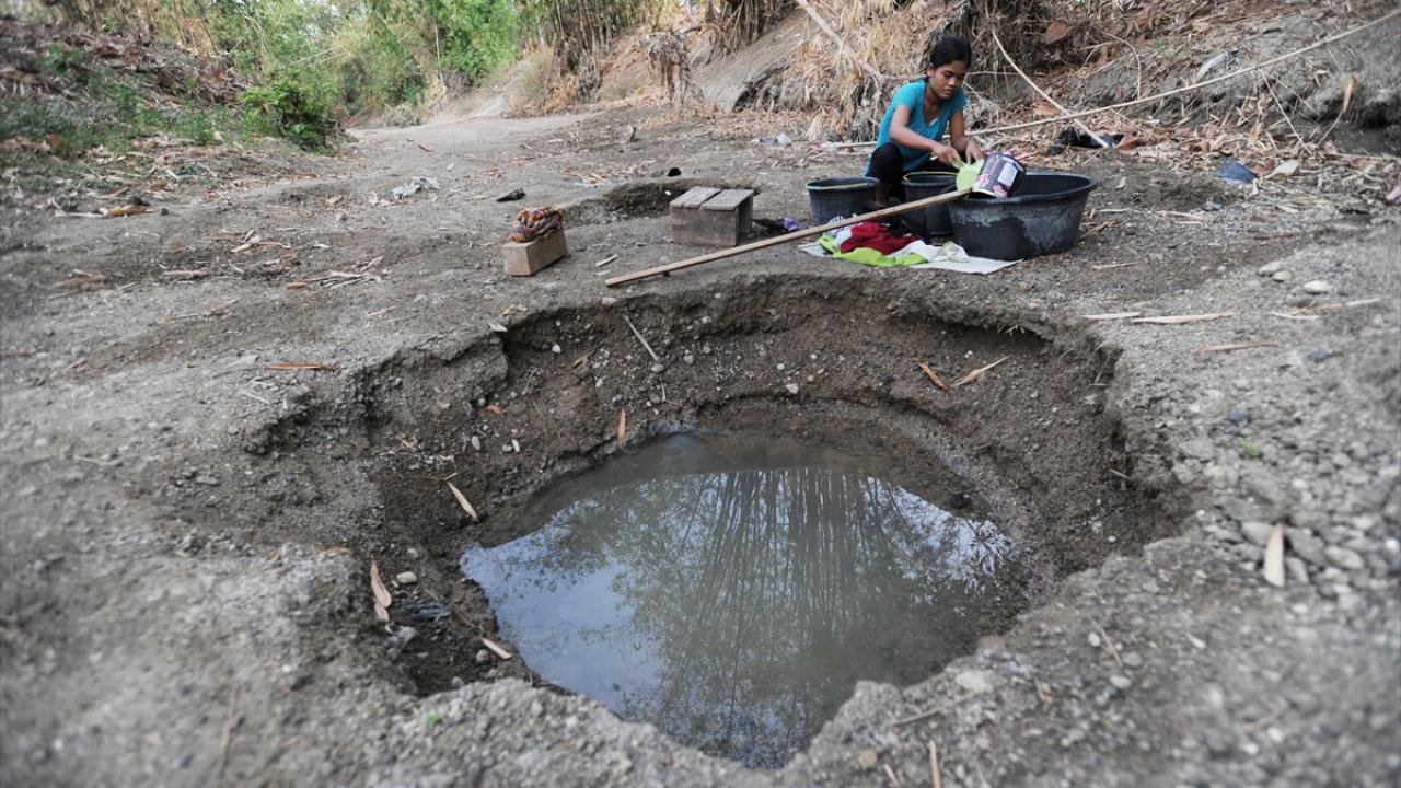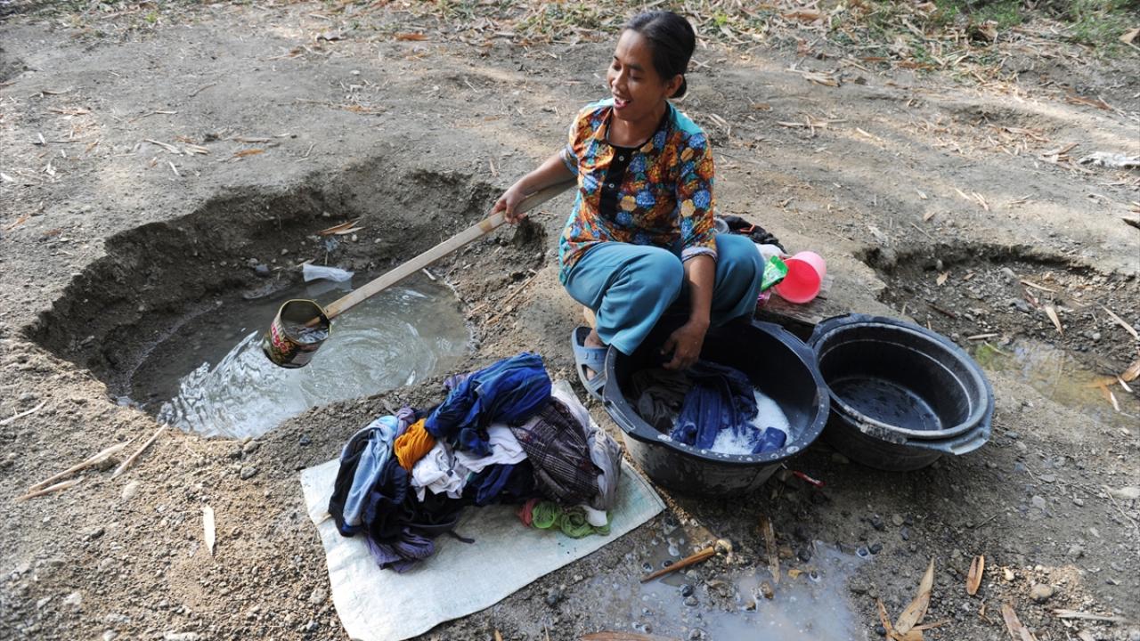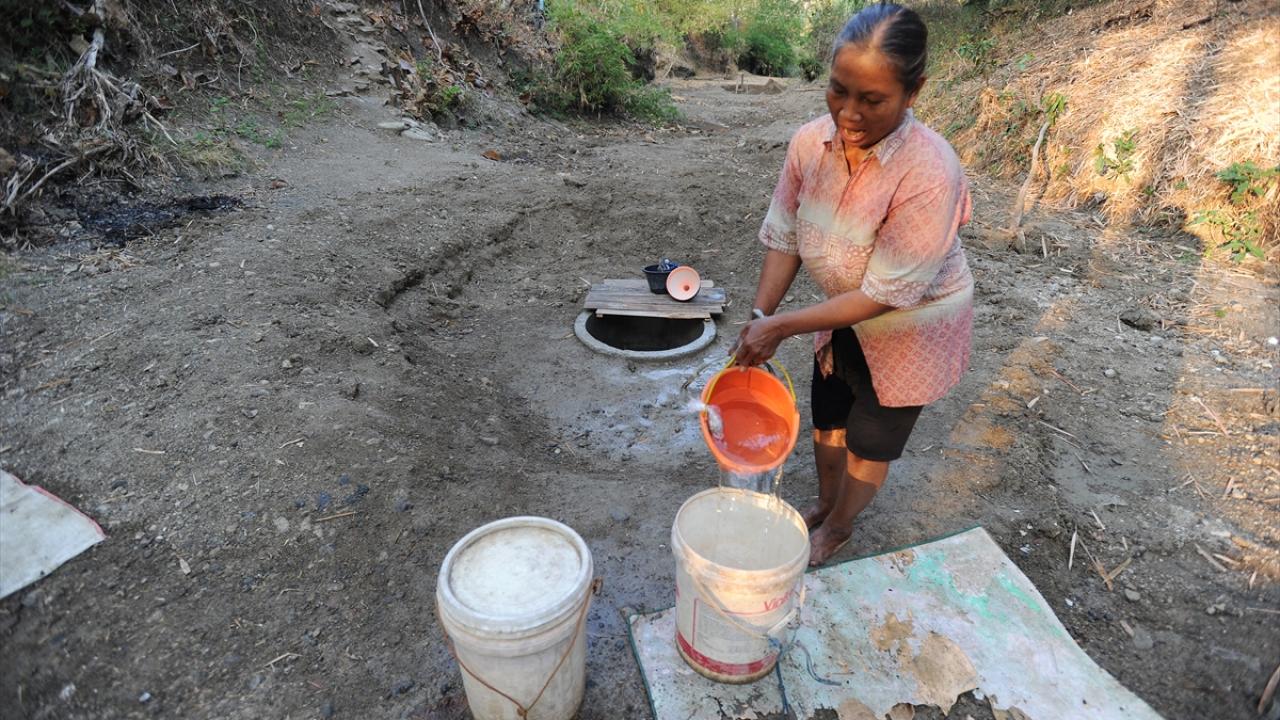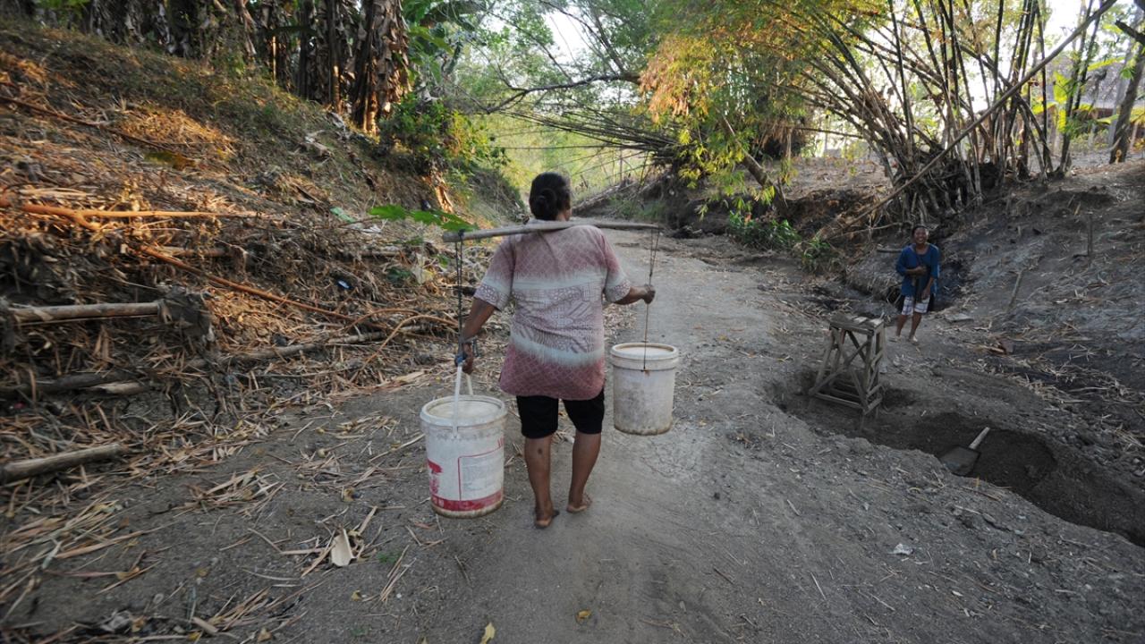 Grobogan şehrine bağlı Ketro köyünde, köy sakinleri su ihtiyaçlarının çözümünü kurumuş nehirlerde bulunan kaynaklarda buldu.