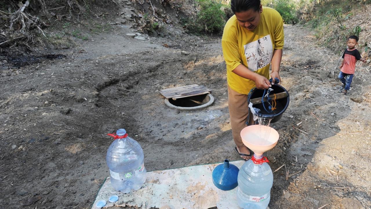 Grobokan`daki Sugihmanik köyü sakinleri içme suyu temini için yaklaşık beş yıldır kaynak suyu kuyularına yöneliyor.