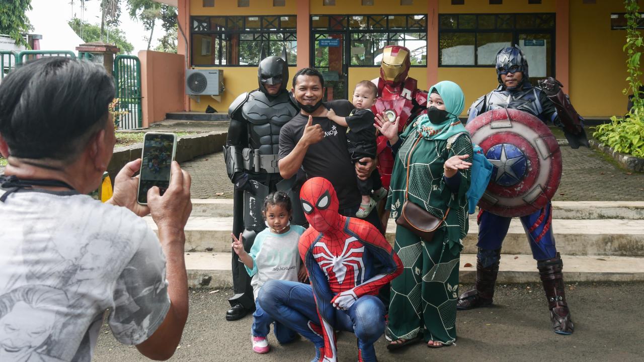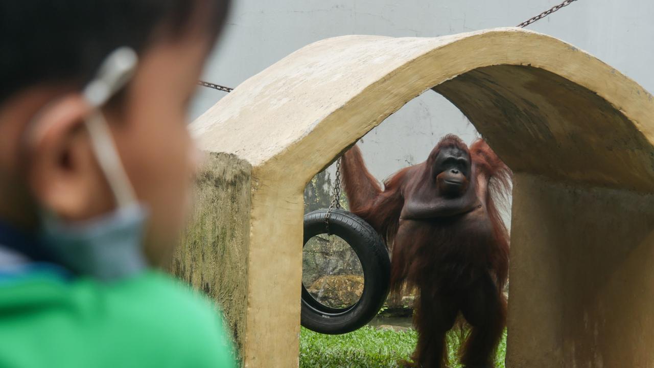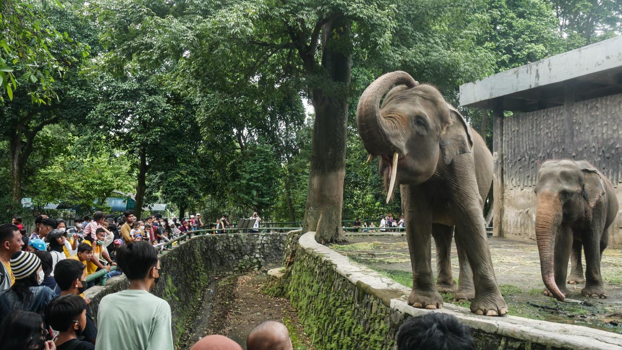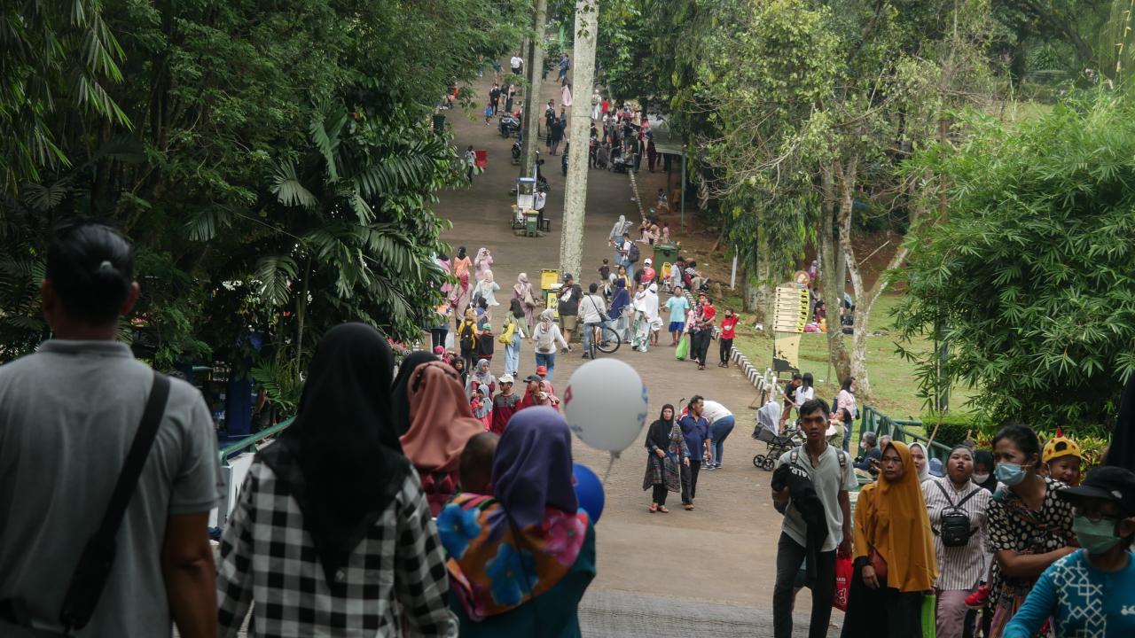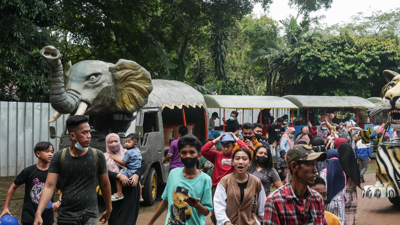 Endonezya'nın başkenti Cakarta'daki Müslümanlar, Ramazan Bayramı'nı aileleri ve çocuklarıyla hayvanat bahçesini ziyaret ederek değerlendirdi.