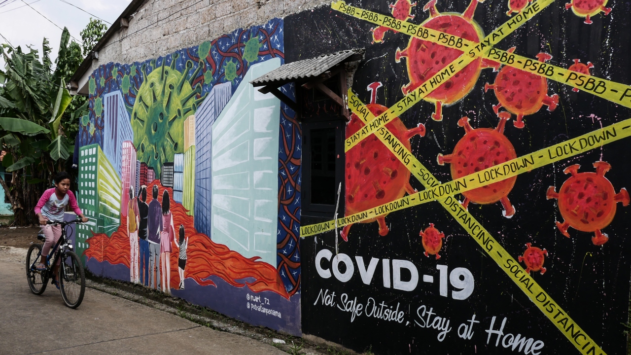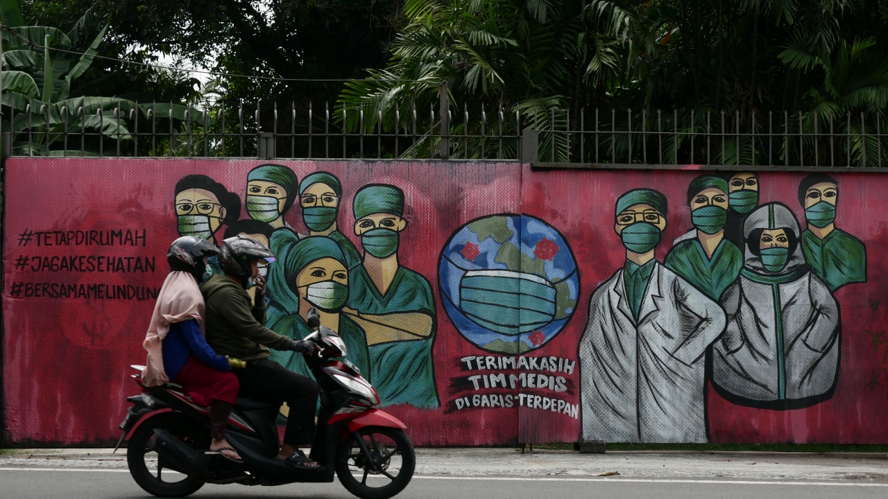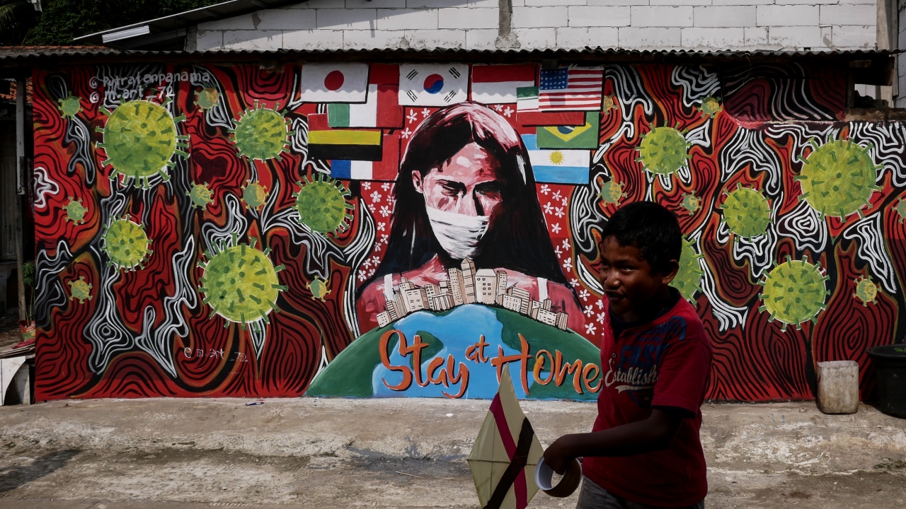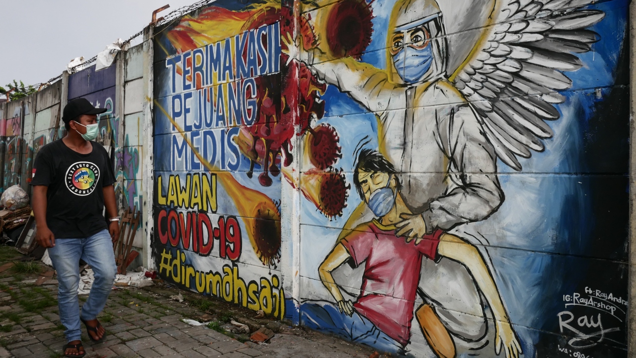 Endonezya'da sanatçılar duvarlara koronavirüs resimleri çizdi