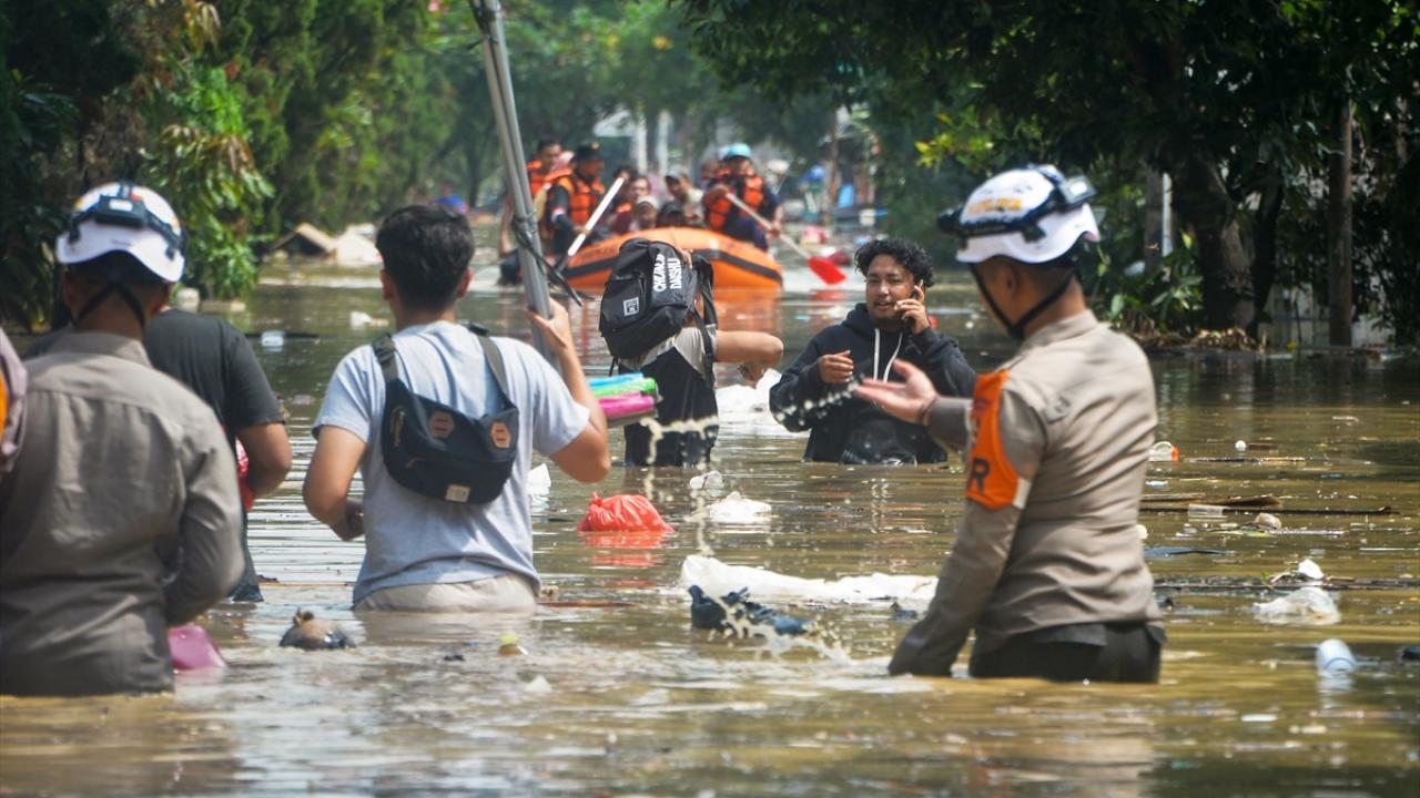 Endonezya'nın Bogor bölgesinde bulunan Nusa Indah Villa Konutları'nda selden etkilenen vatandaşların gönüllülerden oluşan bir ekip tarafından tahliyesine devam ediliyor.