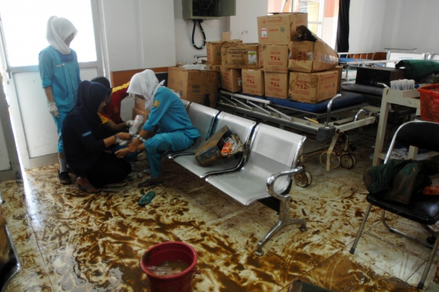 Endonezya'nın Batı Java bölgesinde şiddetli yağışlar sel baskınlarına sebep oldu. Selden etkilenenen Slamet Garut hastanesinde medikal araç gereçler ve bazı ambulanslar zarar gördü.