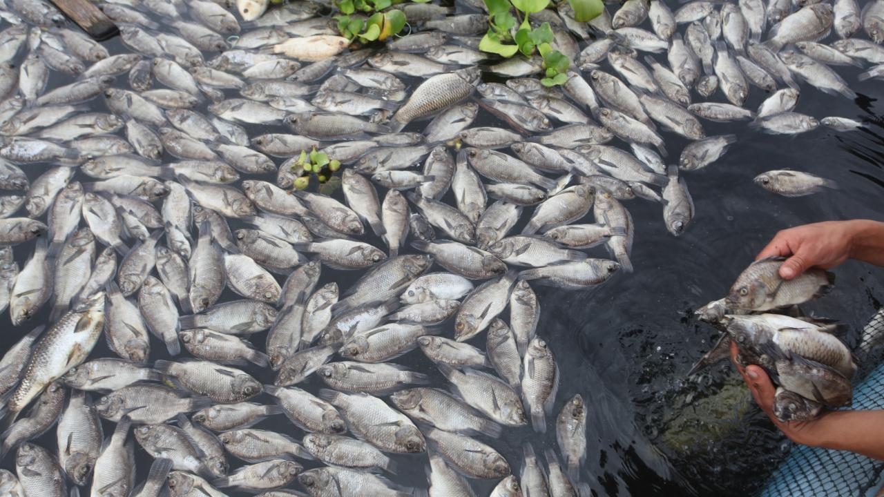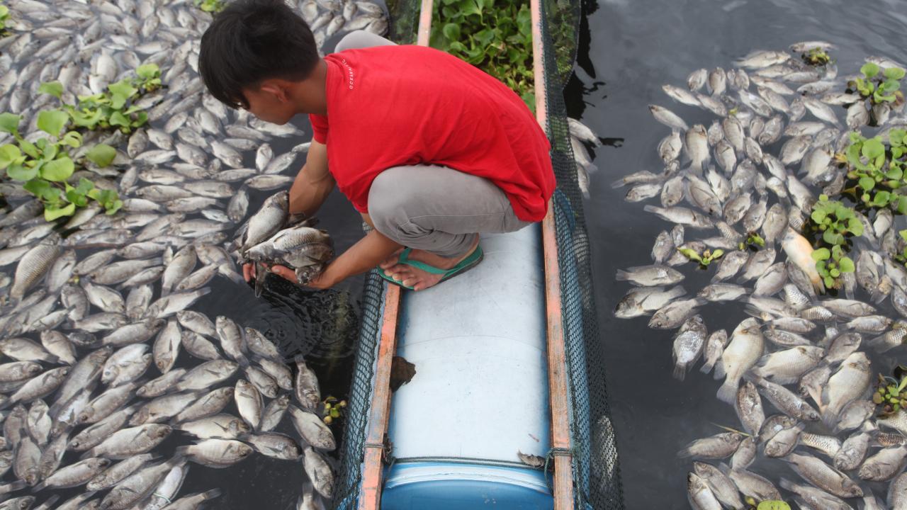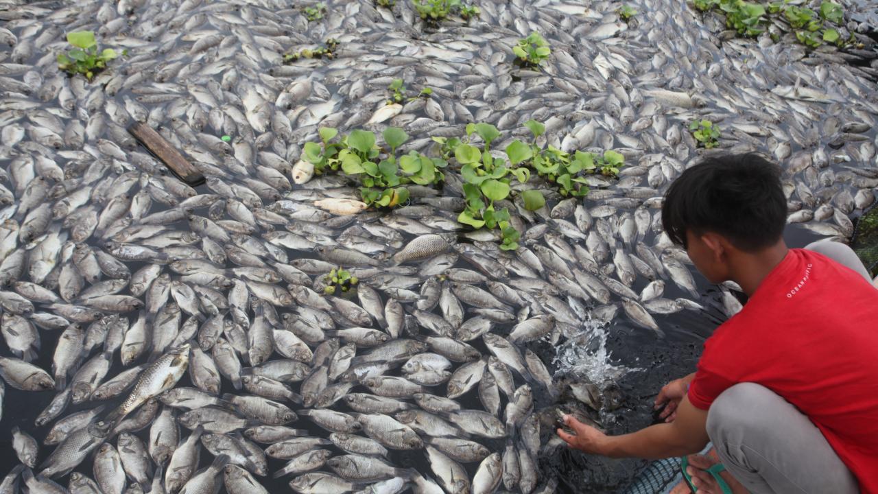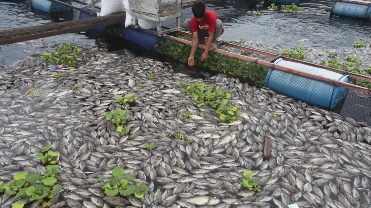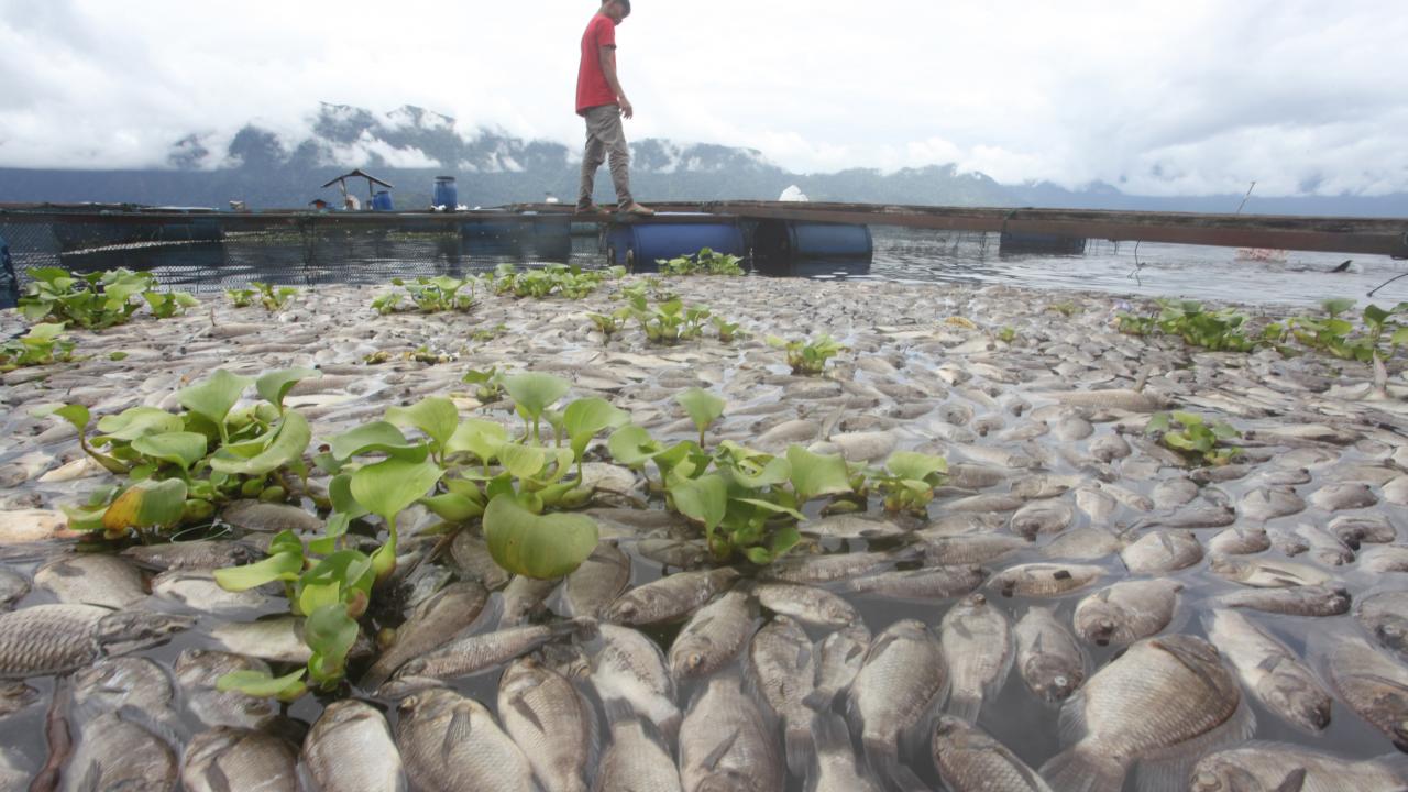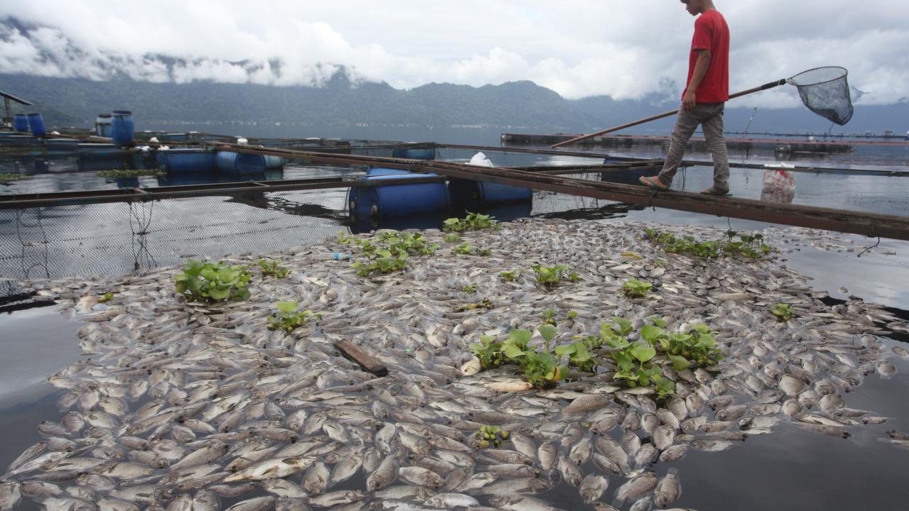 Güneydoğu Asya ülkesi Endonezya'nın Batı Sumatra eyaletindeki Maninjau Gölü'nde yüzlerce ton ölü balık kıyıda görüntülendi.