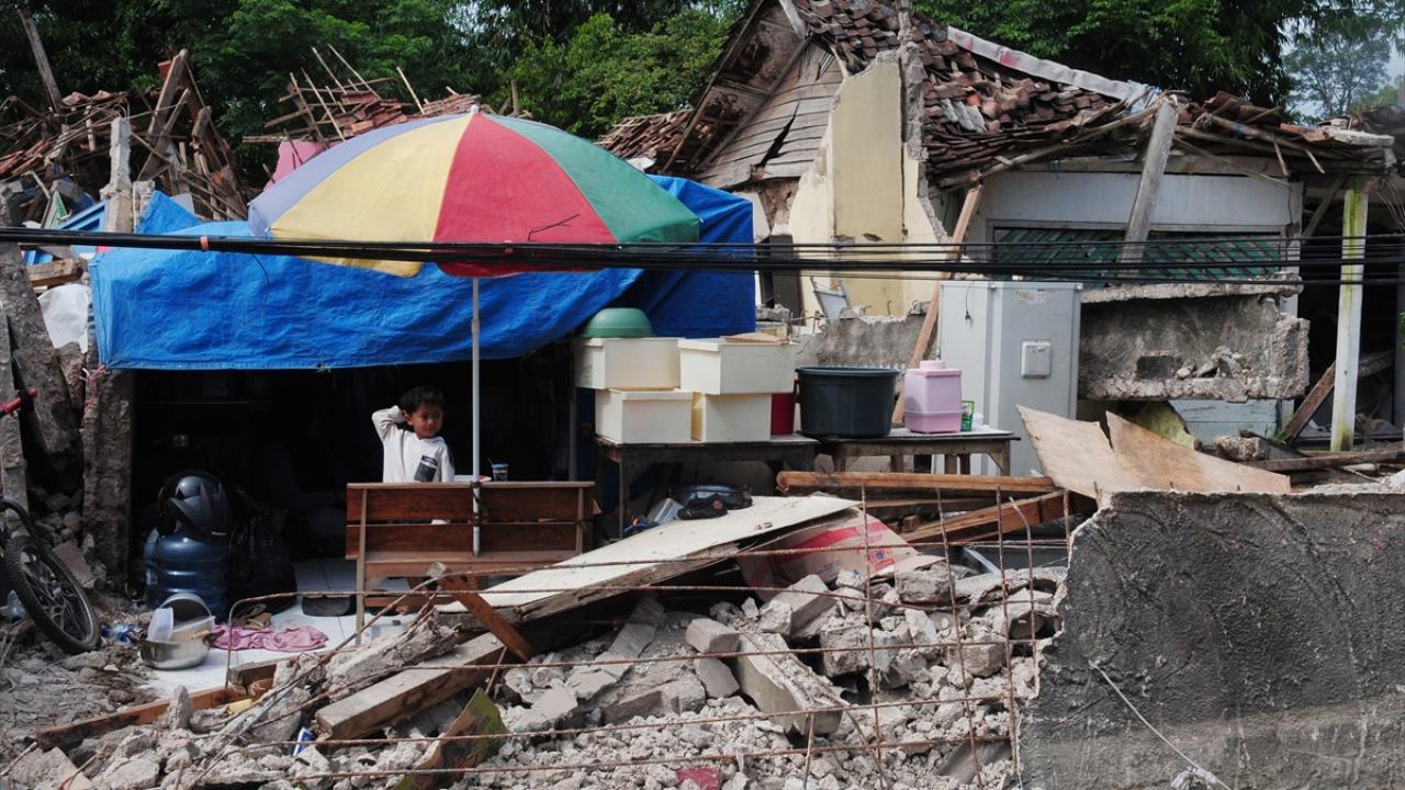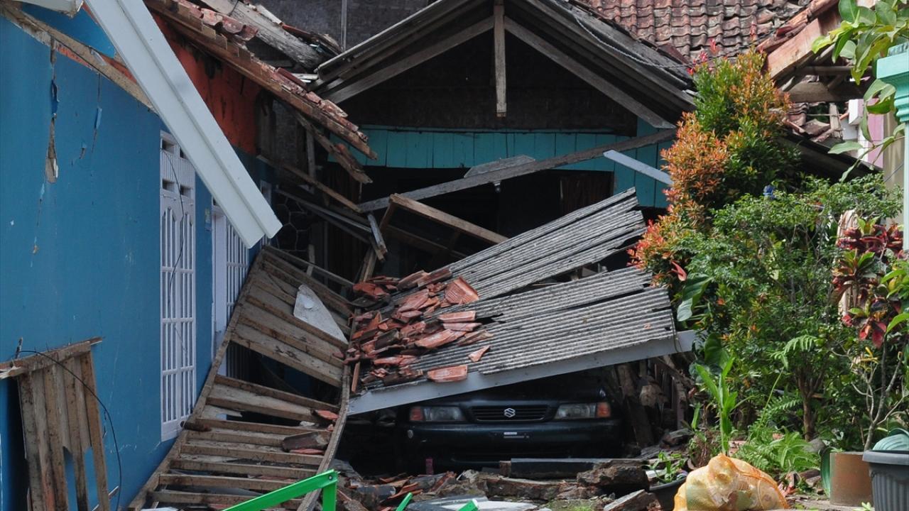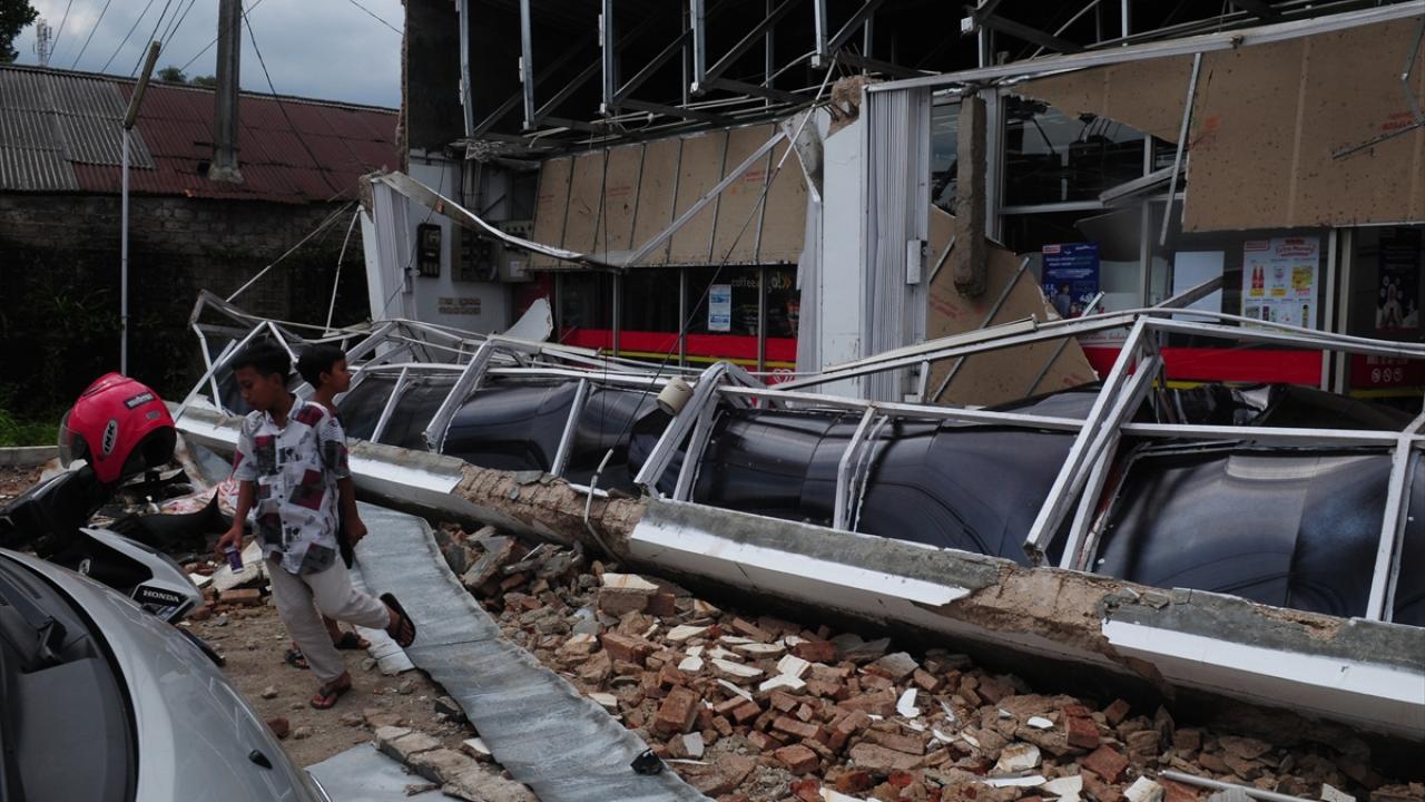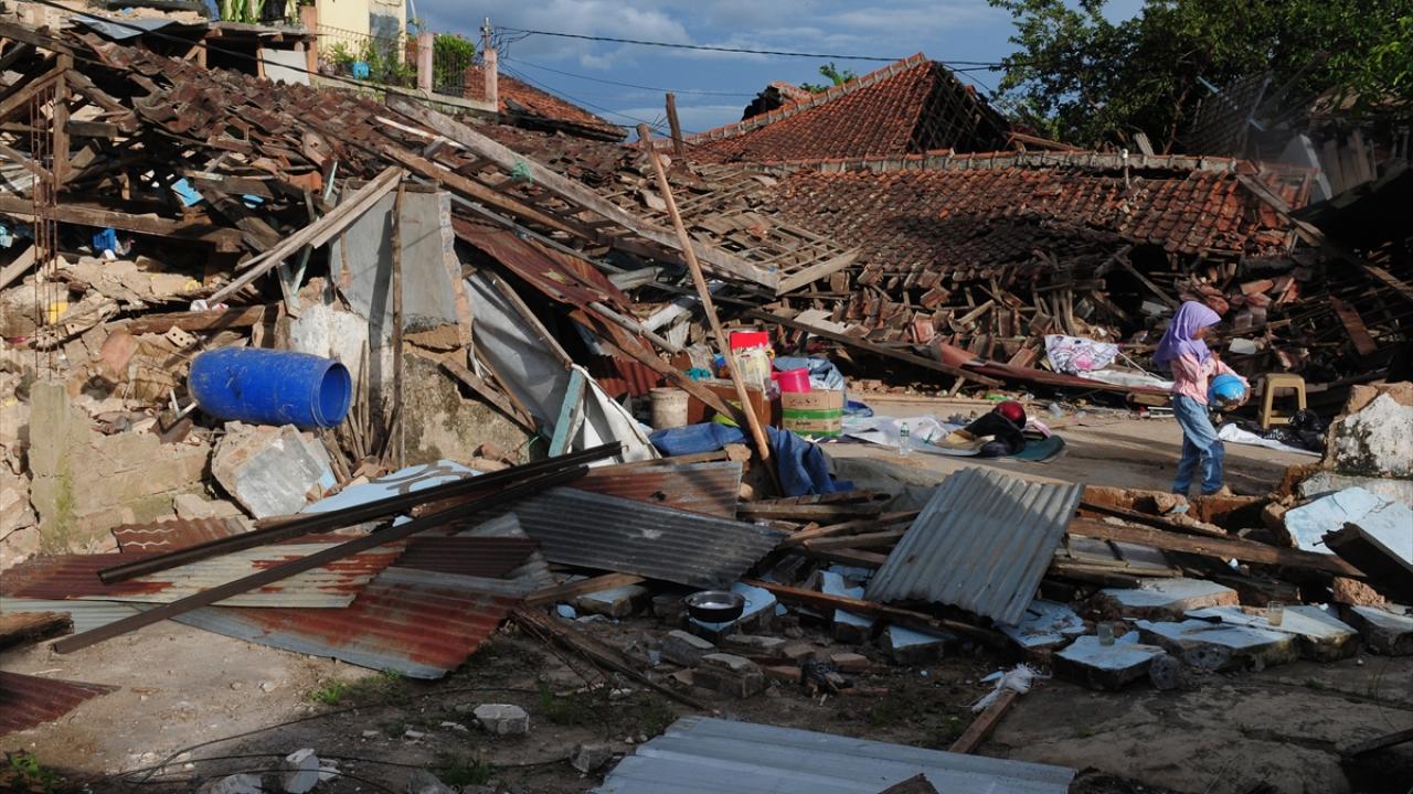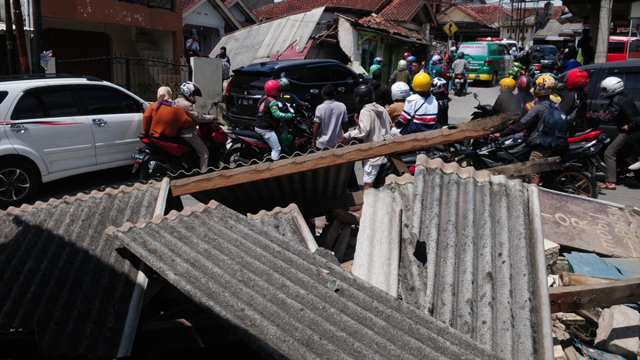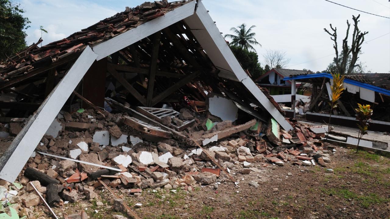 Endonezya'nın Batı Cava eyaletinde meydana gelen 5,6 büyüklüğündeki depremin ardından oluşan hasar görüntülendi.