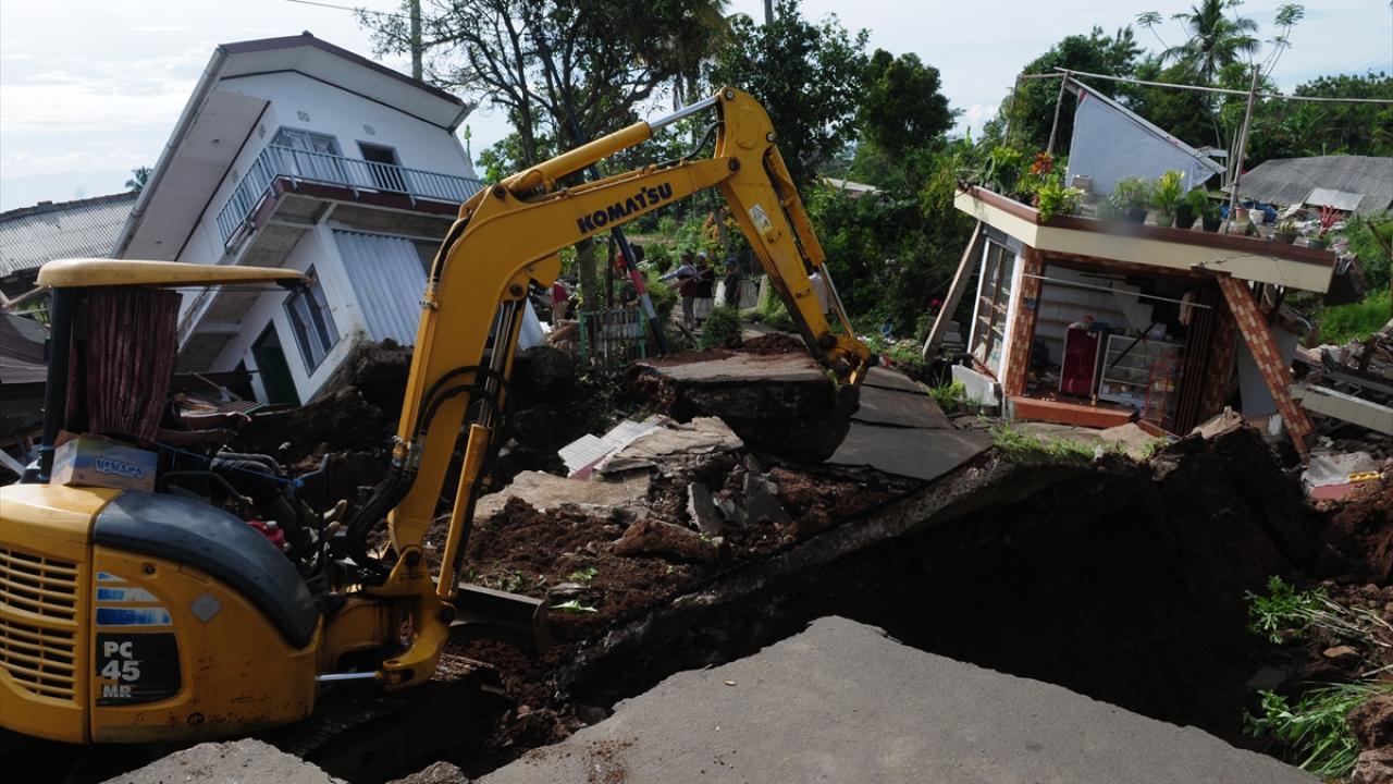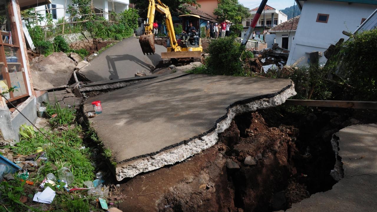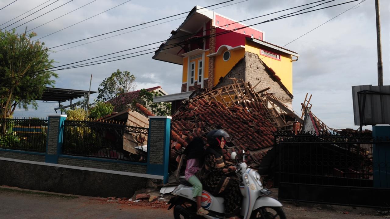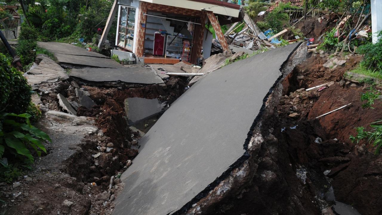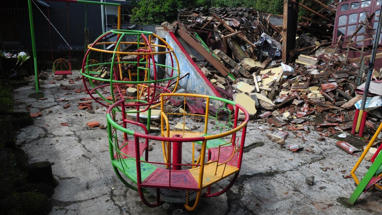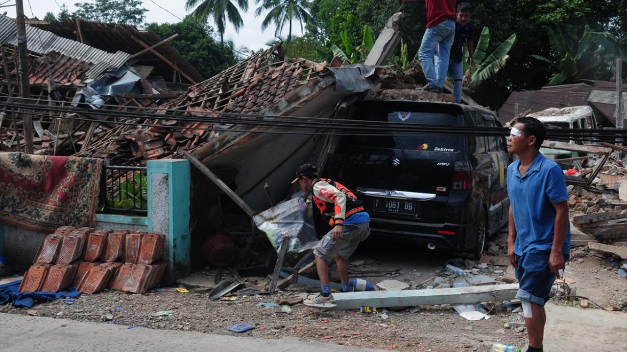 Endonezya'nın Batı Cava eyaletinde meydana gelen 5,6 büyüklüğündeki depremin ardından oluşan hasar görüntülendi.