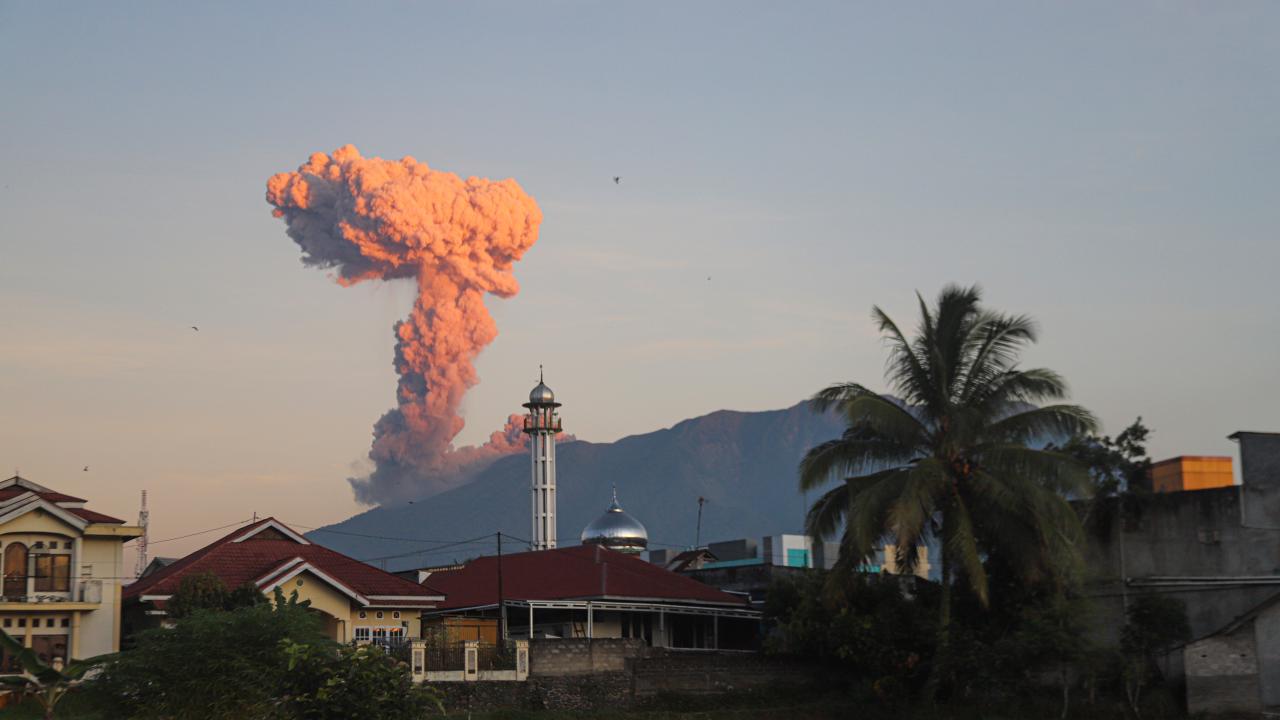 Endonezya'nın Sumatra Adası'nın batısındaki Marapi Yanardağı yeniden faaliyete geçti. Yanardağda patlamalar meydana geldiği ve yanardağın kül püskürttüğü belirtildi.