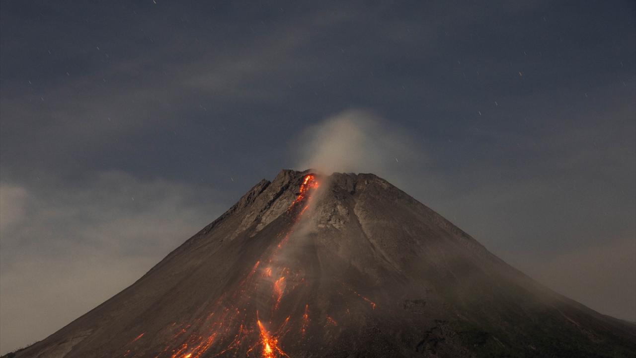 Endonezya'nın Java Adası'nda bulunan ülkenin en aktif yanardağı Merapi Yanardağı'nda devam eden volkanik hareketlilik sonucunda kül bulutları ve lav akıntıları oluşmaya devam ediyor.