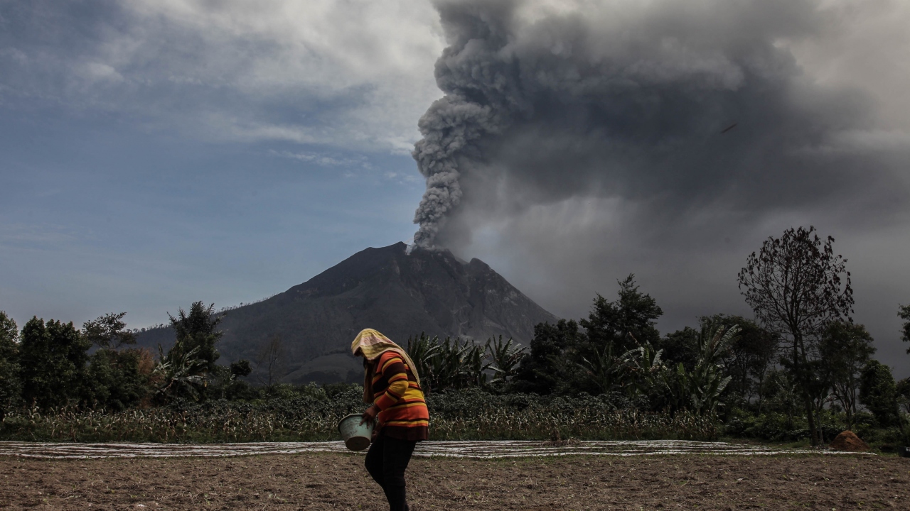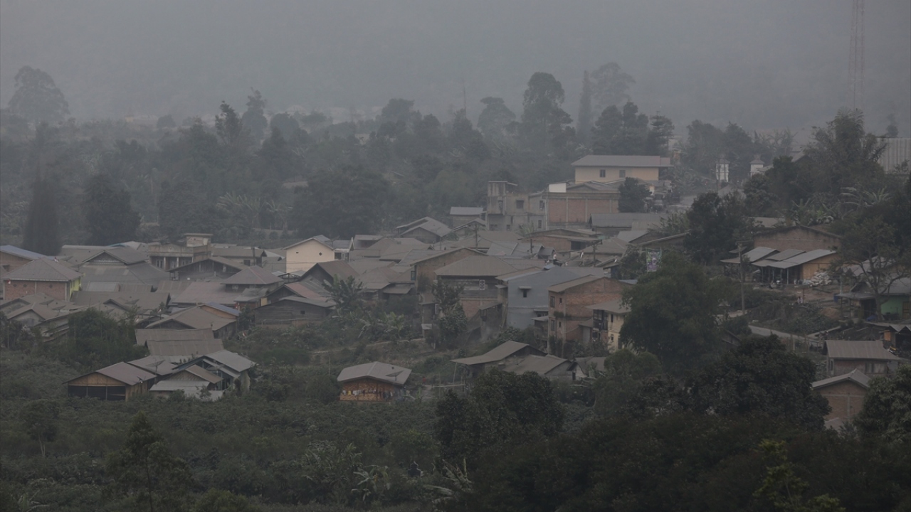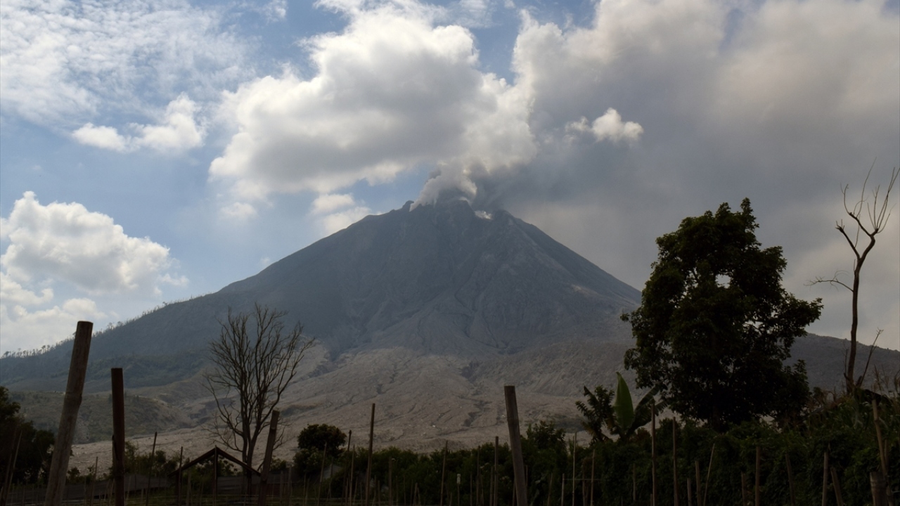 Endonezya’da Sumatra Adası’ndaki Sinabung Yanardağı’nda devam eden volkanik hareketlilik nedeniyle püsküren kül ve duman, bazı yerleşim yerlerine ve tarım arazilerine kadar ulaştı.