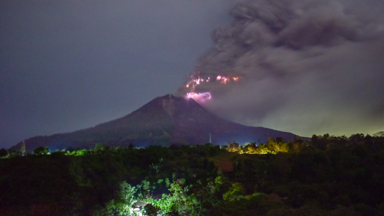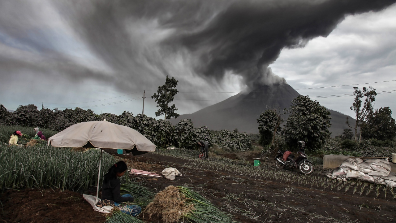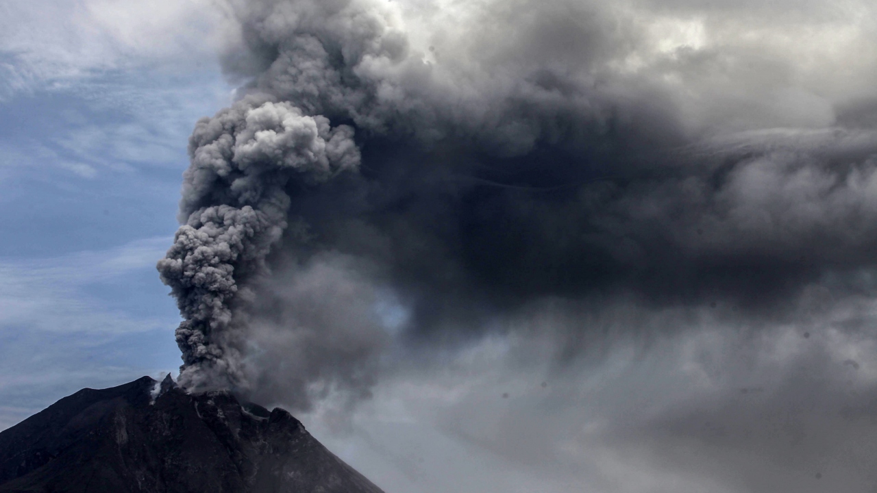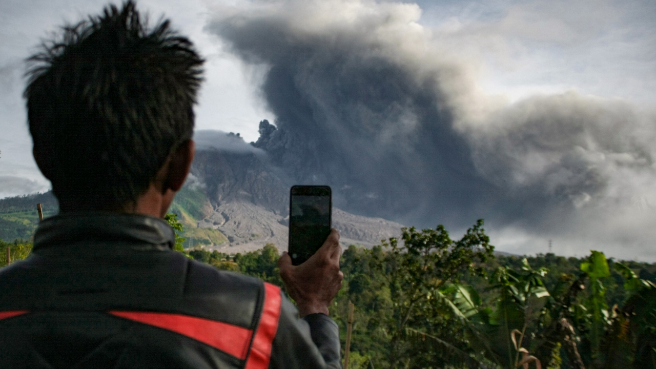 Endonezya’da Sumatra Adası’ndaki Sinabung Yanardağı’nda devam eden volkanik hareketlilik nedeniyle püsküren kül ve duman, bazı yerleşim yerlerine ve tarım arazilerine kadar ulaştı.