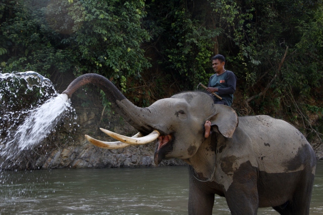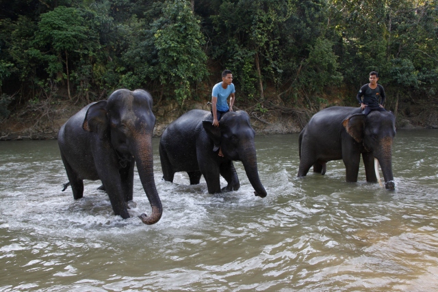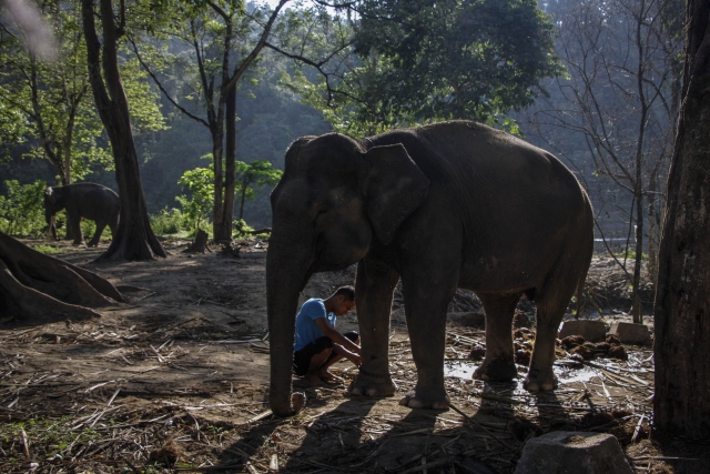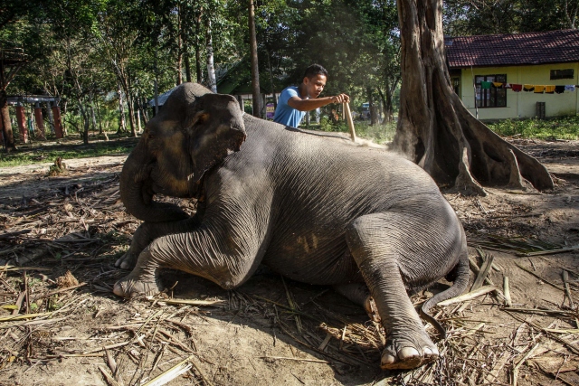 Endonezya'nın Açe bölgesindeki Ulu Masen vahşi ormanında, nesli tükenmekte olan Sumatra fillerine Endonezyalı orman görevlileri bakıyor. Ağaçların tüketim amaçlı hızla yok edilmesi ve orman alanlarının azalmasıyla birlikte doğal ortamlarını kaybeden Sumatra fillerinin de sayısı giderek azalıyor. Endonezyalı orman görevlileri yasa dışı aktiviteleri ortadan kaldırmak için önlemler alıyor.