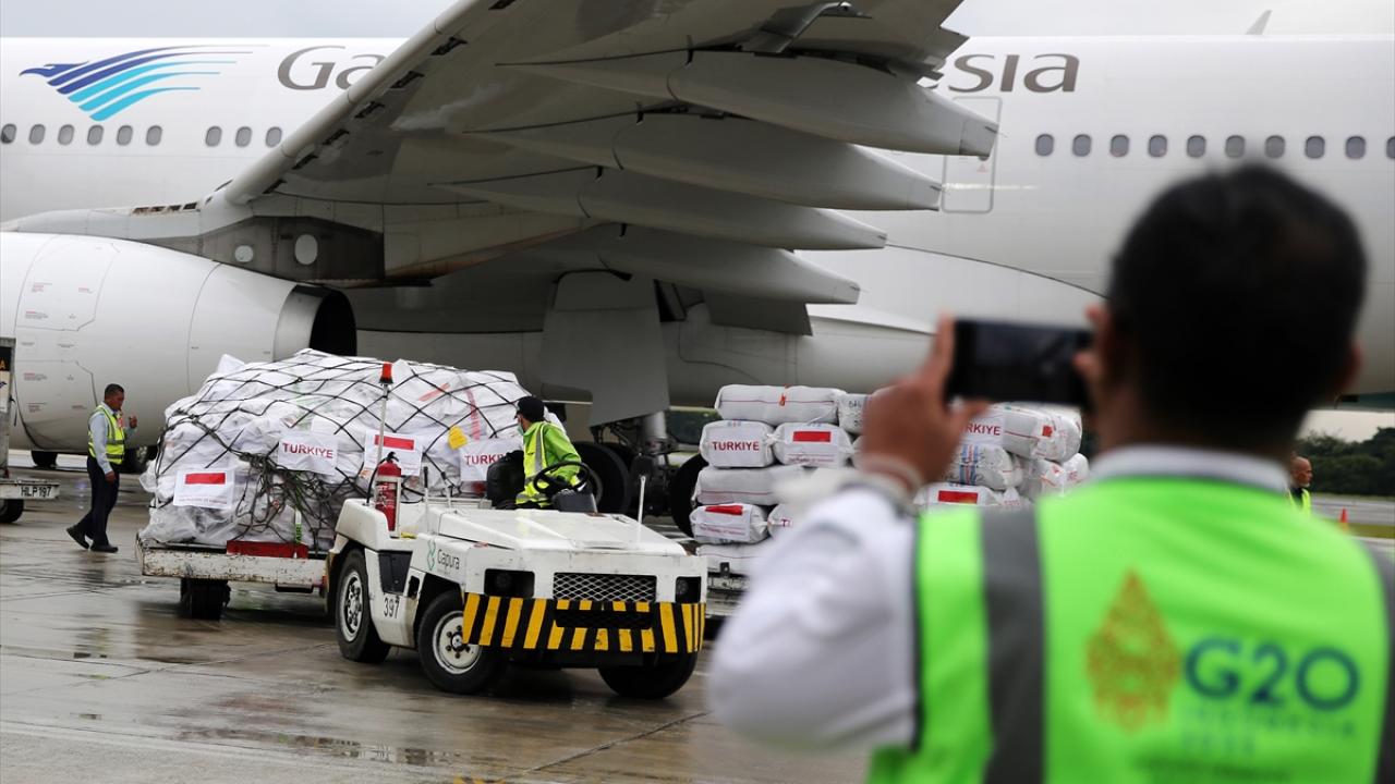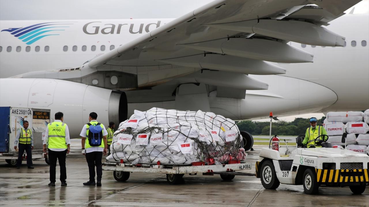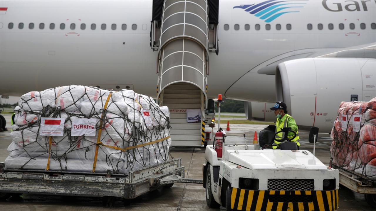 Kahramanmaraş merkezli depremlerin ardından, Endonezya'nın başkenti Cakarta'da toplanan 140 ton insani yardım, Halim Perdanakusuma Havalimanı'ndan Türkiye ve Suriye'ye gönderildi.