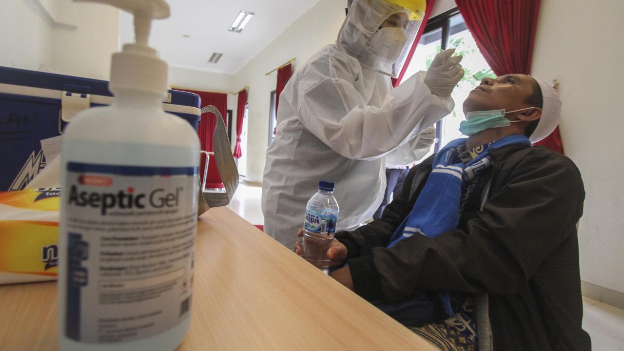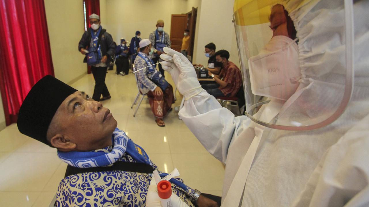Endonezya`nın başkenti Cakarta`da umre ziyareti için seyahat edecek olan Endonezyalı Müslümanlar koronavirüs testinden de geçti.