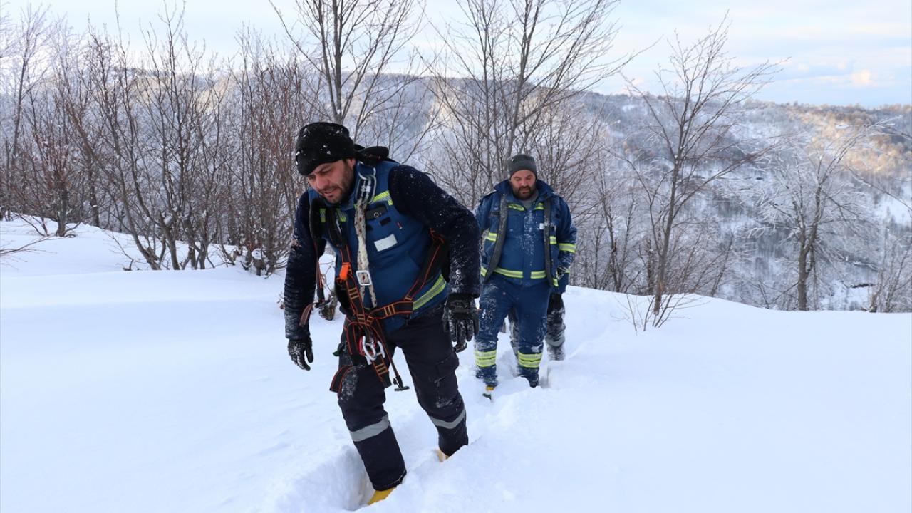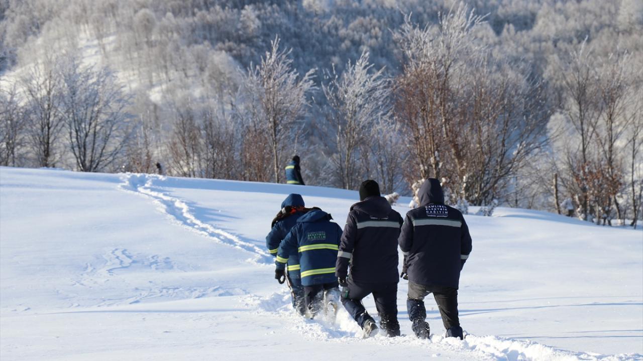 Karla kaplı arazide kimi zaman zorlukla yol alan enerji timleri, ağaçlık bölgelerden geçerek arızaların oluştuğu elektrik direklerine ulaşıyor.