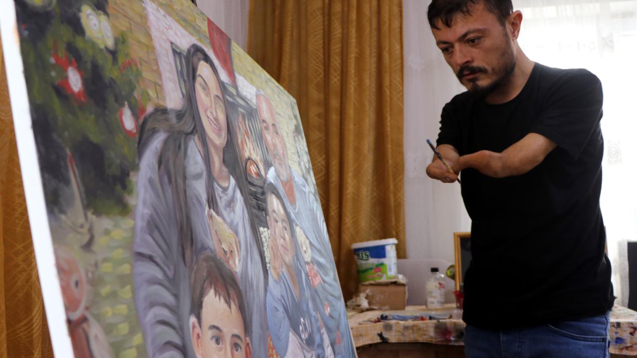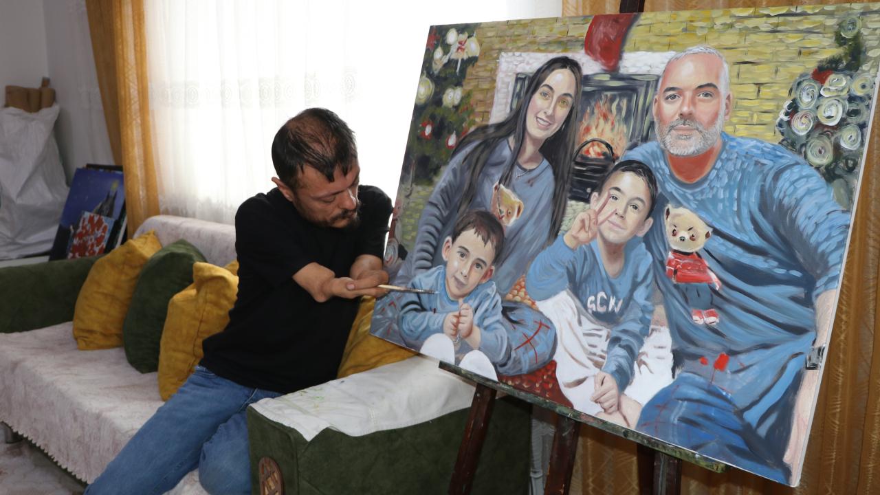 Edremit ilçesi Eminpaşa Mahallesi’nde yaşayan 4 çocuk babası Vedat Kiyat, doğuştan iki eli olmamasına rağmen dirseklerine yerleştirdiği kalemlerle yaptığı resimlerle büyük beğeni topluyor.