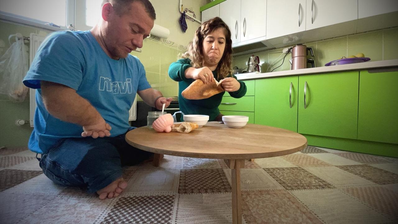 36 yaşındaki Ahmet ve 31 yaşındaki Özge Karadeniz, uzun mesafe yürüyemedikleri ve merdiven çıkamadıkları için giriş katta oturuyorlar.