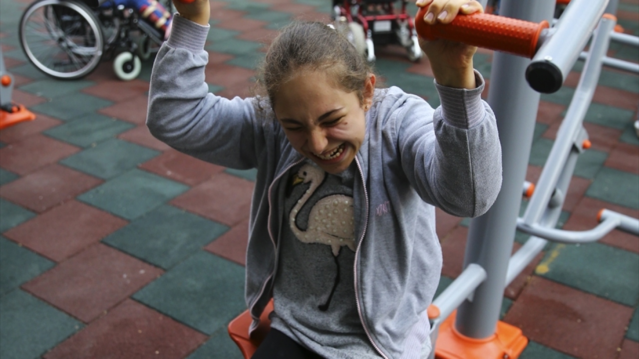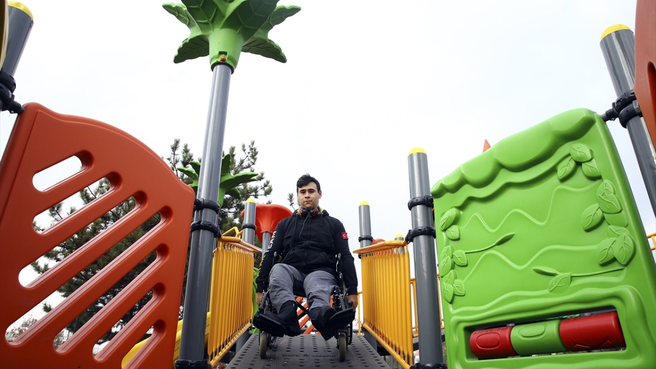 Altındağ Belediyesince Mayıs 2019`da açılan bin metrekarelik alandaki parkın zemininin, bedensel engellilerin ihtiyaçları gözetilerek tamamen kauçuktan yapıldığını belirten Pehlivan, çocukların ortopedik engellerine uygun egzersiz aletlerini rahatça kullanabildiğini, düşme ve yaralanma risklerinin olmadığını anlattı.